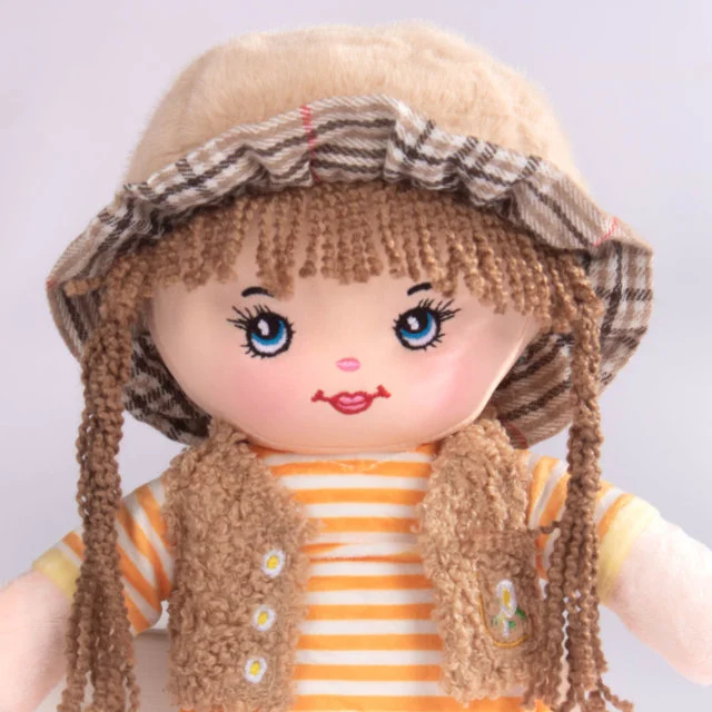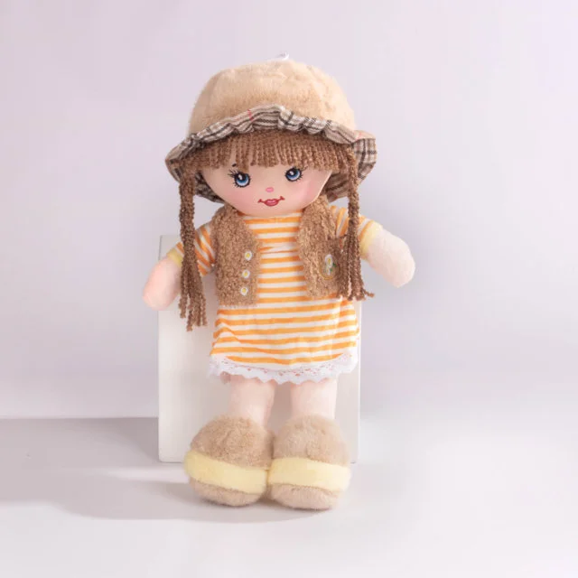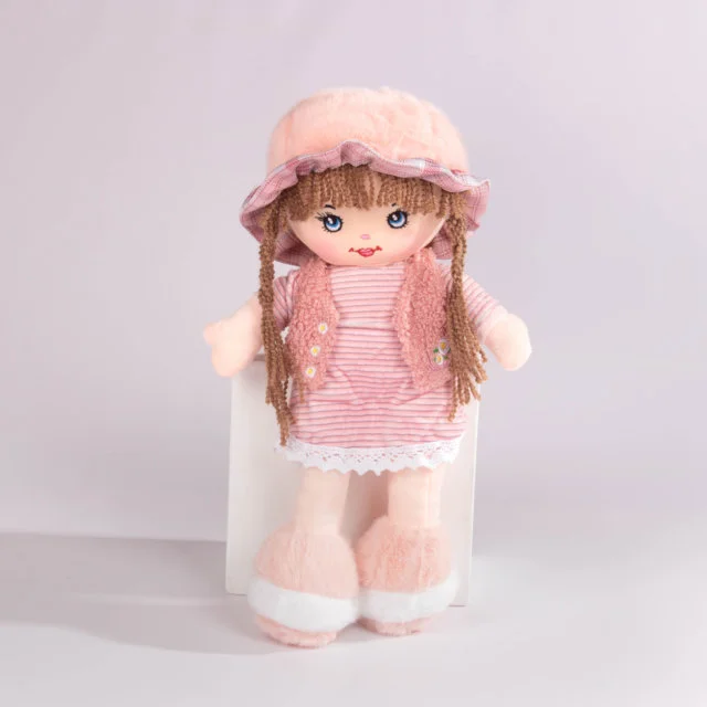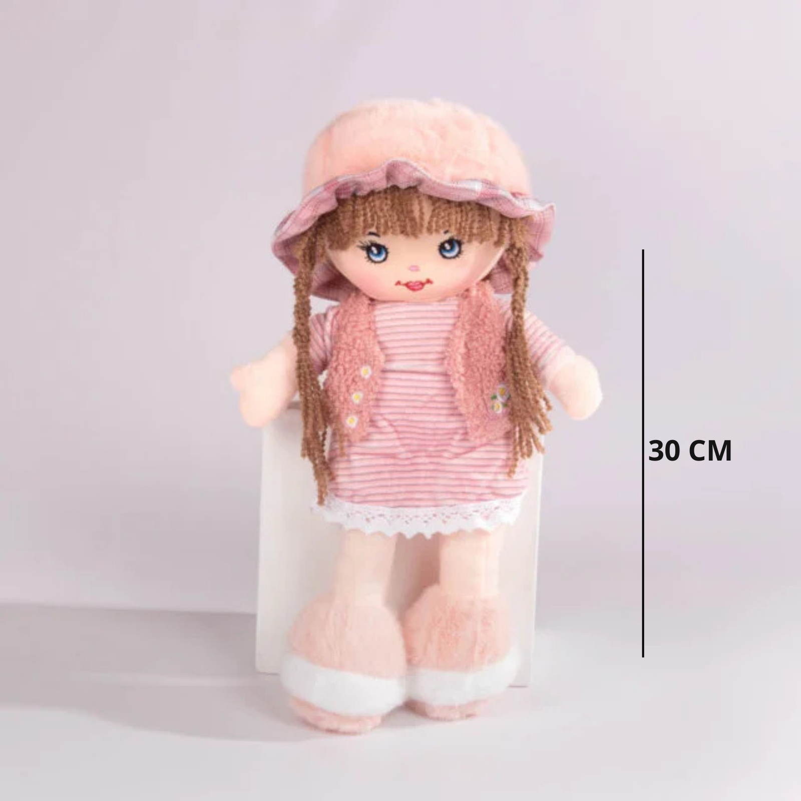 Una encantadora muñeca de trapo con detalles delicados como su vestido y sus trenzas, ideal para acompañar los juegos, decorar espacios o regalar en cualquier ocasión especial. Su diseño cálido y amigable transmite dulzura y ternura.
