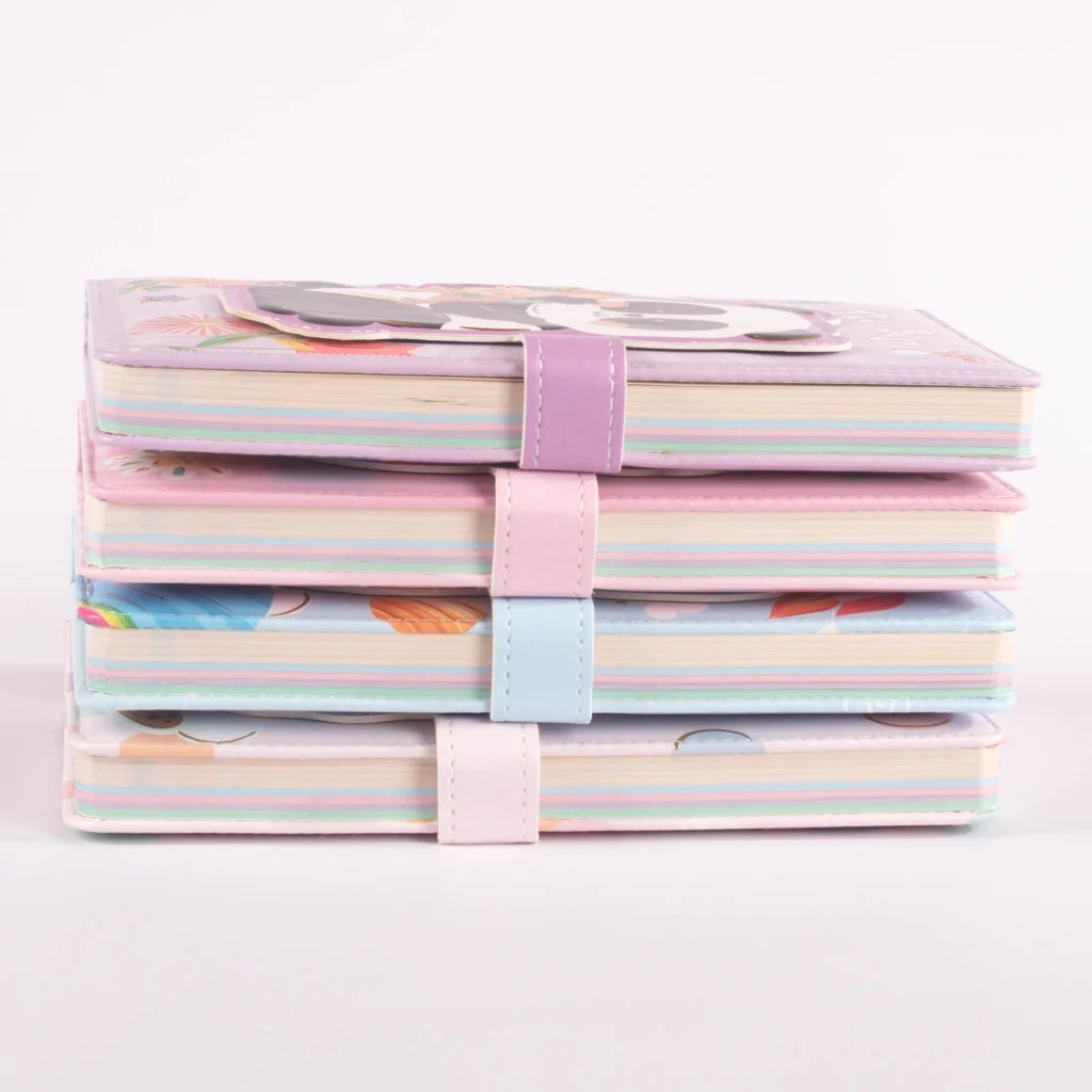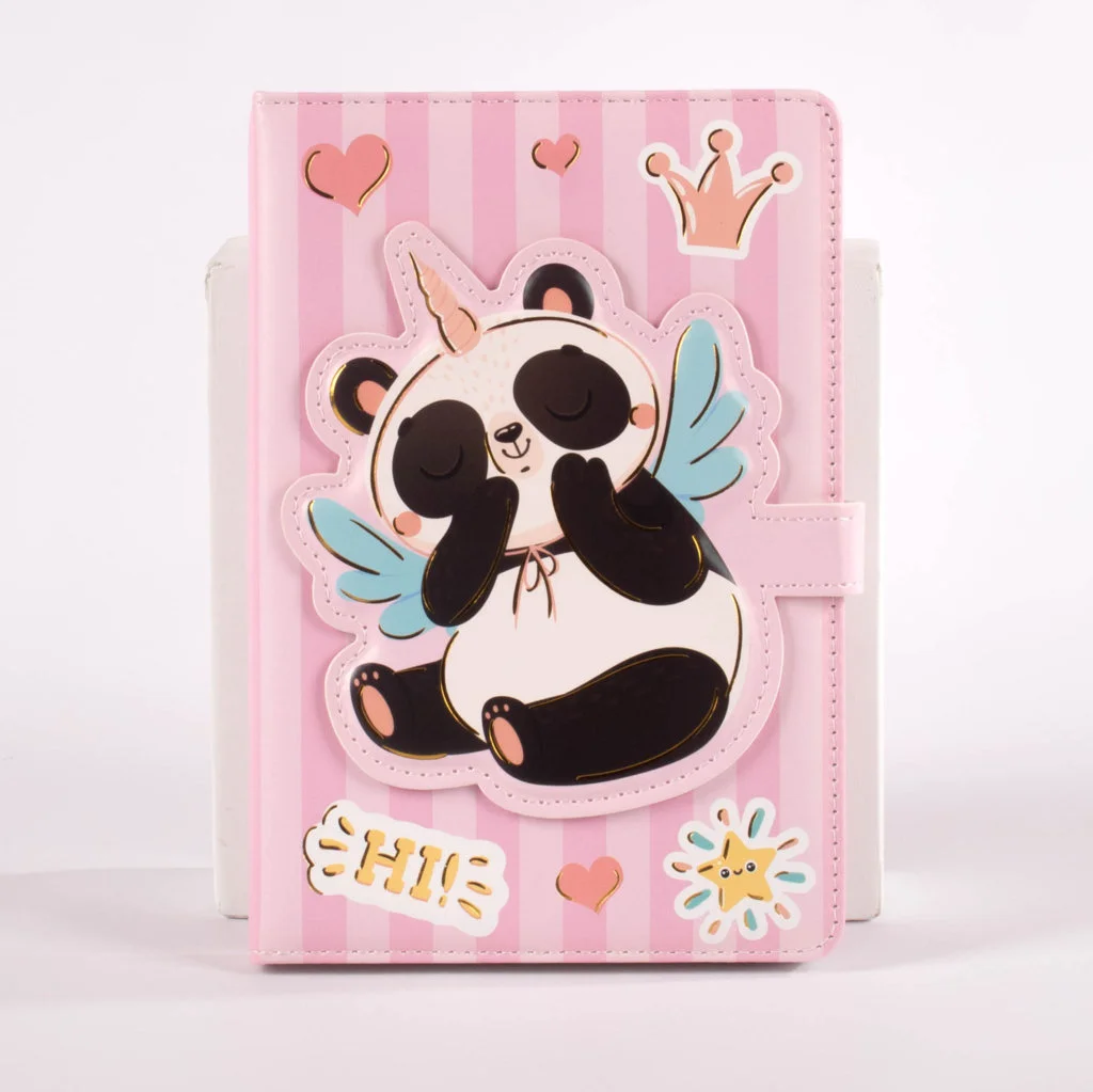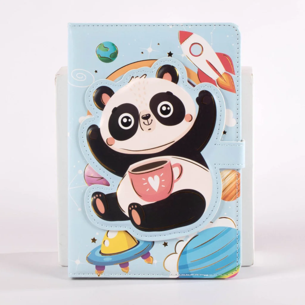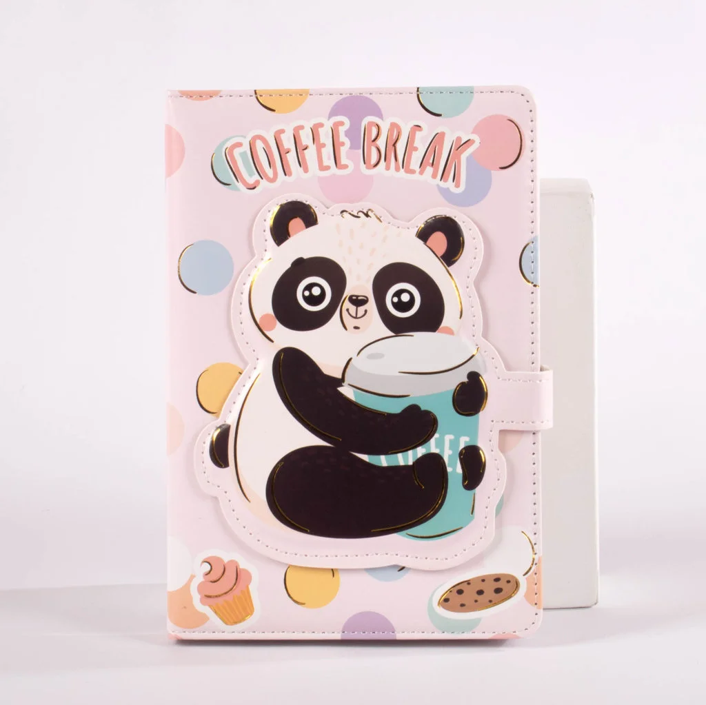 libretas de pasta dura con encantadores diseños de osos panda en 4 presentaciones diferentes. Cada libreta incluye ilustraciones vibrantes acompañadas de frases inspiradoras, perfectas para motivarte mientras escribes o dibujas. Cuentan con un broche de cierre magnético que protege las páginas y les da un toque funcional y decorativo. Su tamaño de 13 × 19 cm las hace ideales para llevar contigo a donde vayas.