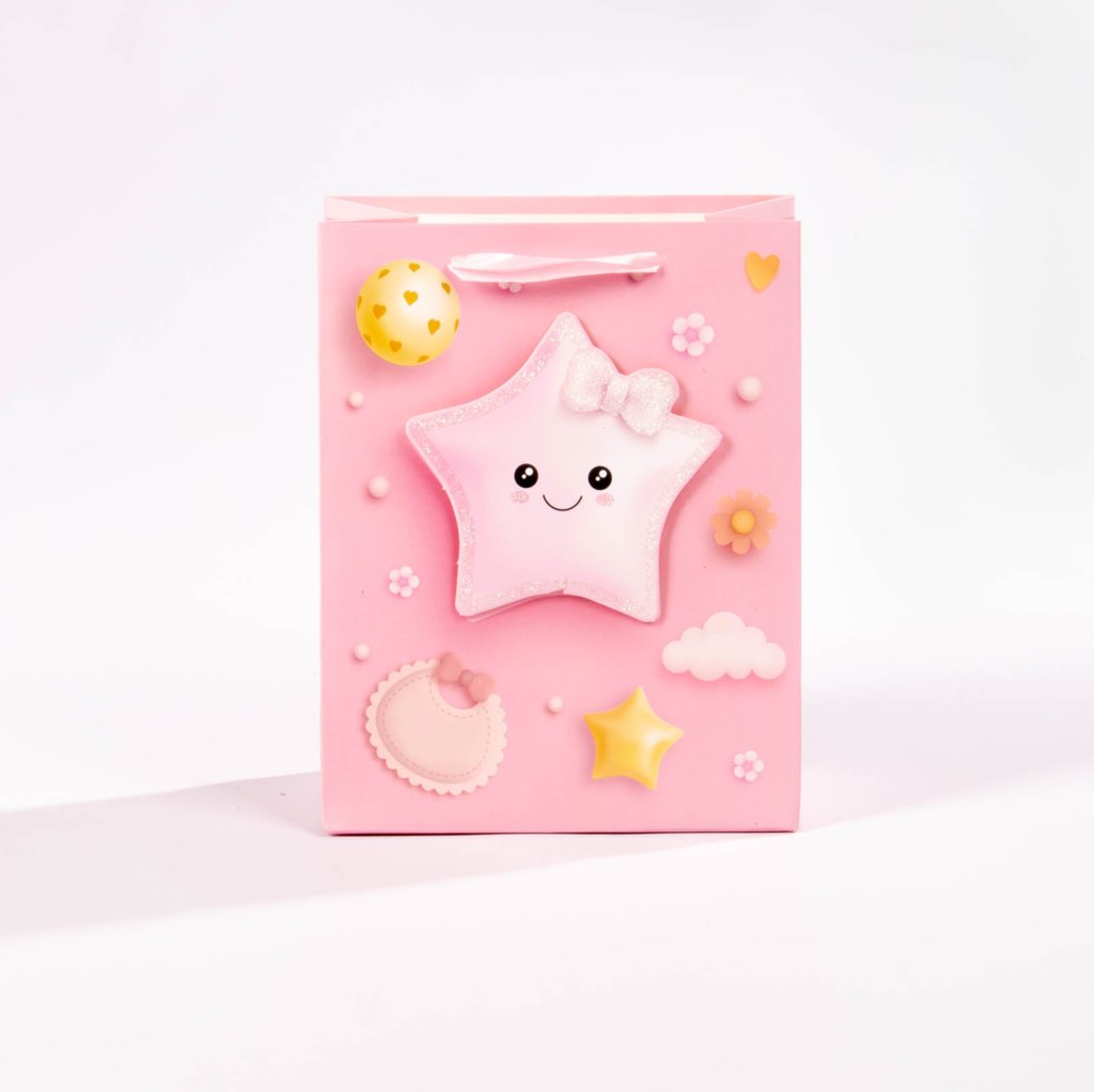 Bolsa de regalo tamaño pequeña (S) con medidas de 18×23×10 cm. Disponible en 2 colores y diseños para que elijas tu favorito. Es el complemento perfecto para presentar tus obsequios de manera especial y con estilo.