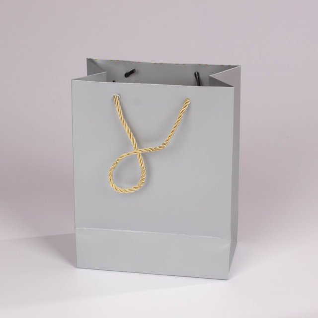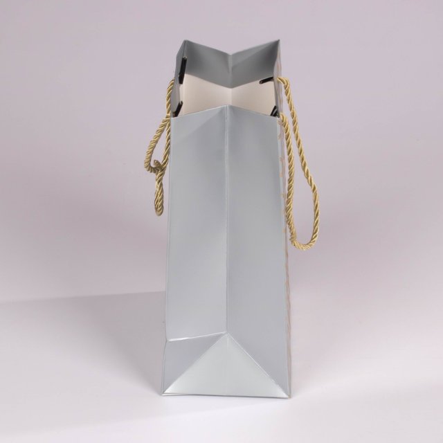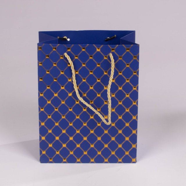 Fabricadas en cartón laminado de alta resistencia con acabado mate. Cuentan con asas de cordón trenzado que proporcionan un agarre cómodo y seguro, manteniendo la estructura firme y estable.