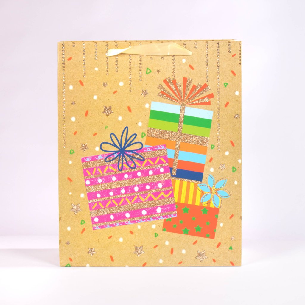 Bolsa de regalo tamaño grande (L), con medidas de 30 x 12 x 40 cm. Viene en 4 colores y diseños surtidos, ideales para adaptarse a cualquier ocasión especial. Puedes escoger tu favorito. Es el complemento perfecto para presentar obsequios grandes con estilo y elegancia.