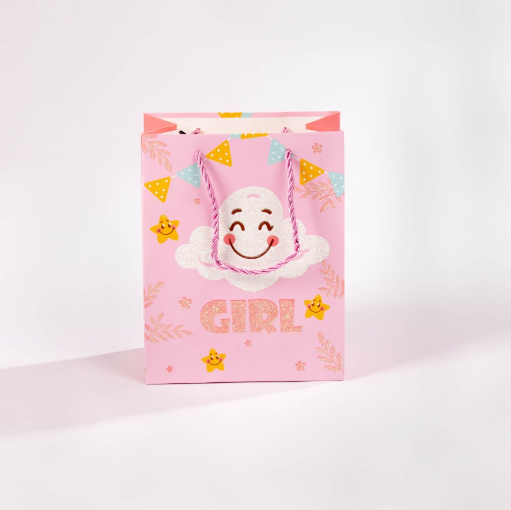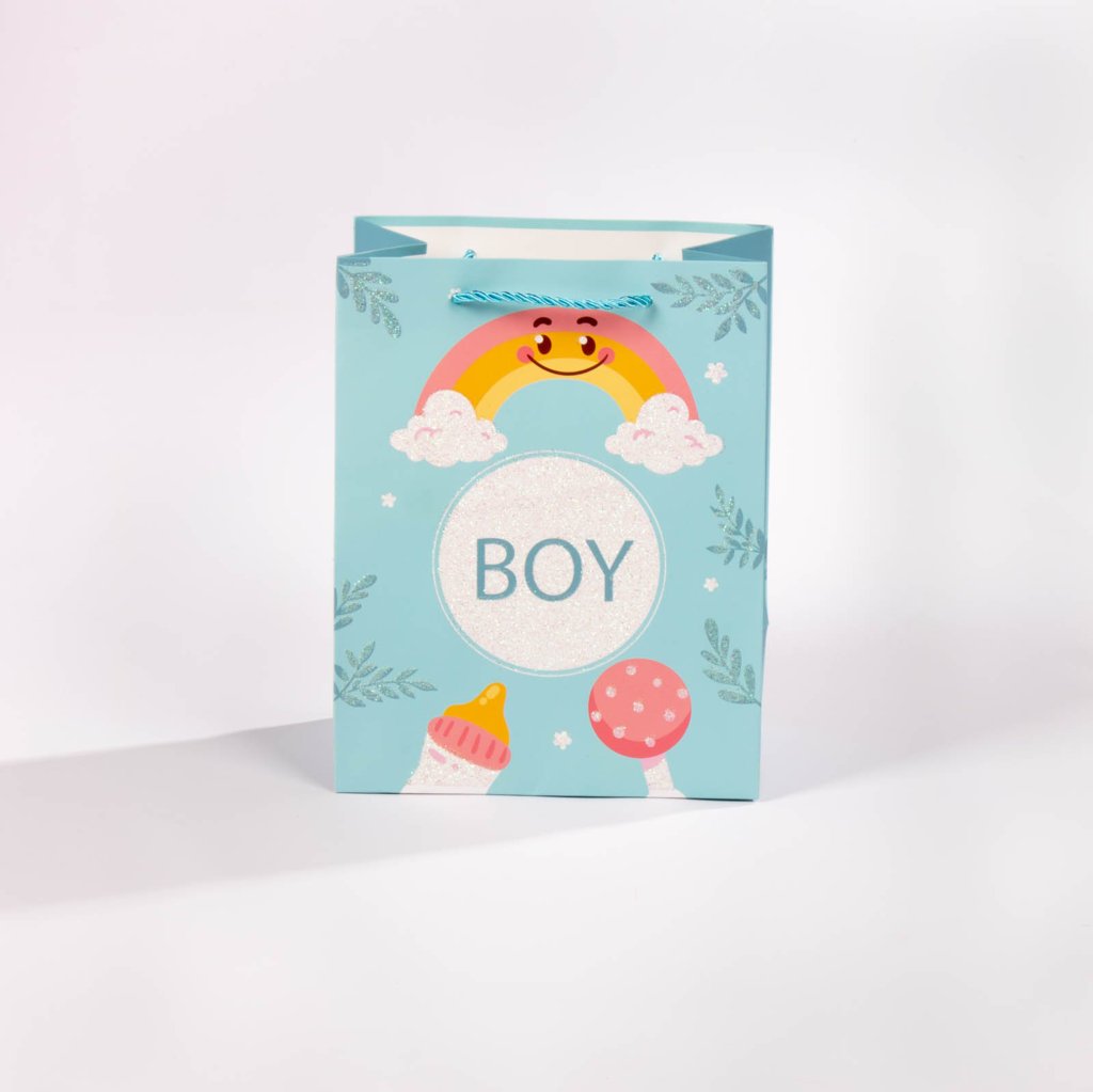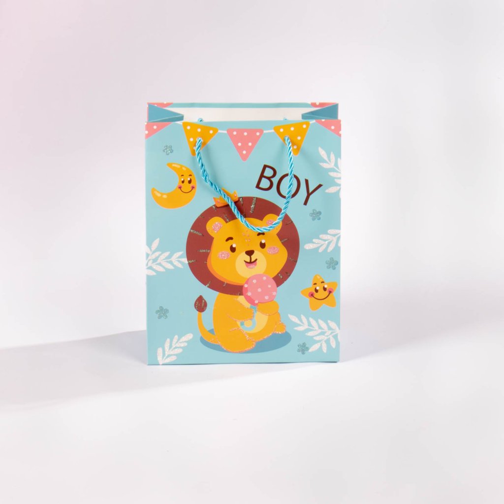 Bolsa de regalo tamaño pequeño (S), perfecta para complementar ese obsequio especial que deseas dar a un bebé. Con medidas de 23 x 18 cm, está disponible en 4 colores y diseños surtidos, ideales para celebrar nacimientos, baby showers o cualquier ocasión especial. Puedes elegir tu favorita según el estilo del regalo o la ocasión.