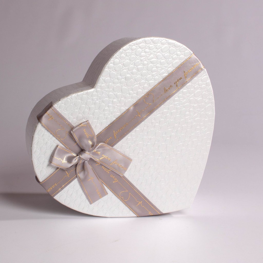 Material: Cartón rígido forrado en papel decorativo con acabado brillante y cinta de tela con aplique central.
