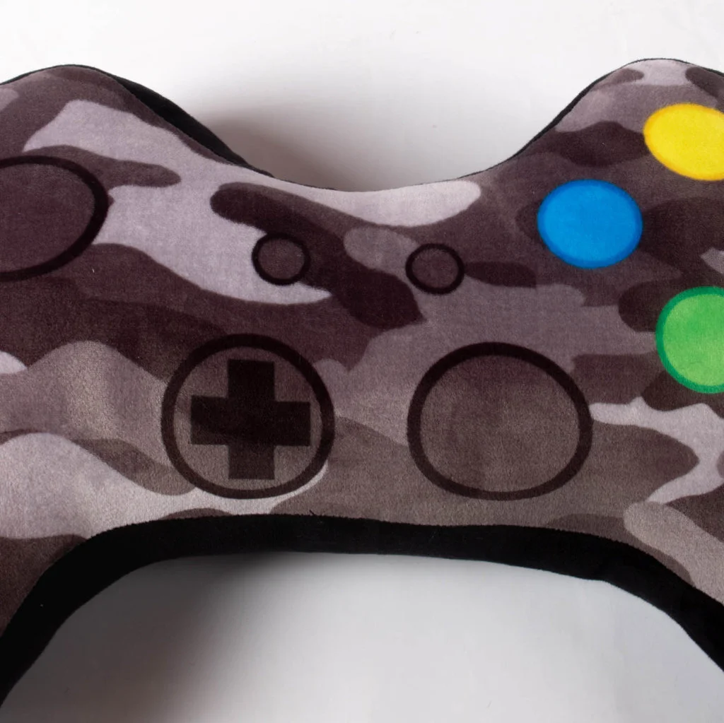 Este cojín con forma de control de videojuego es el regalo ideal para amantes del gaming. Con un diseño divertido y moderno, está disponible en 3 colores diferentes para que elijas el que más te guste. Es perfecto para decorar habitaciones o acompañar largas jornadas de juego con comodidad.
