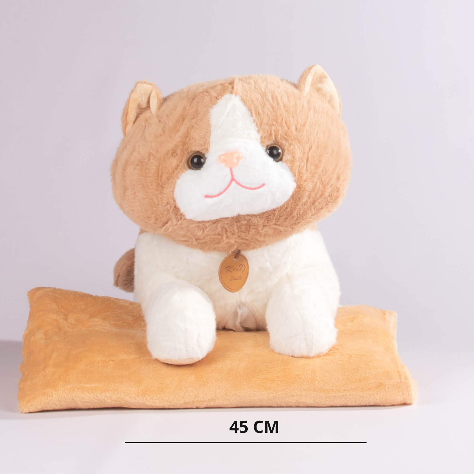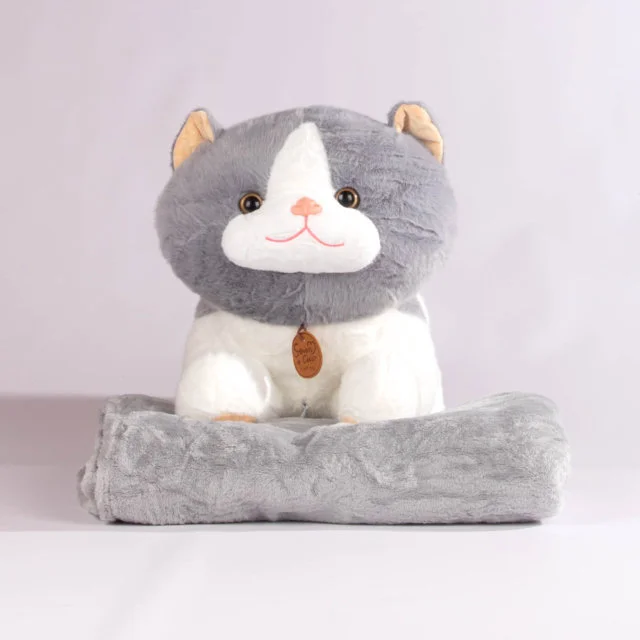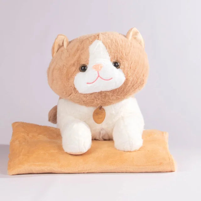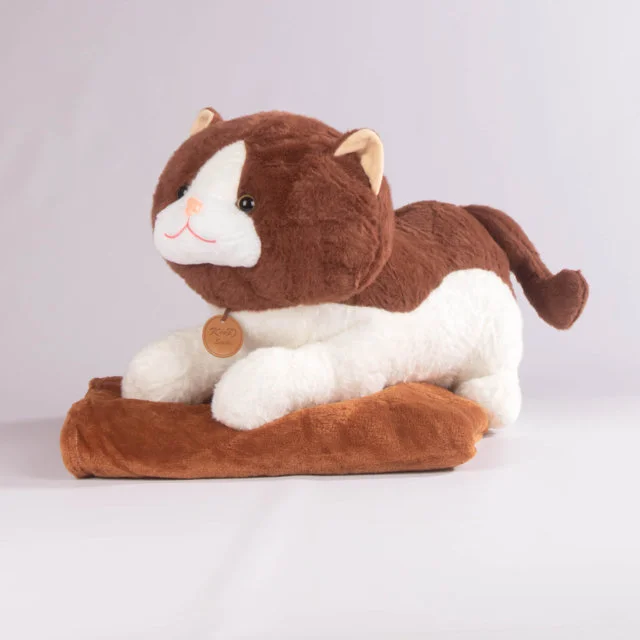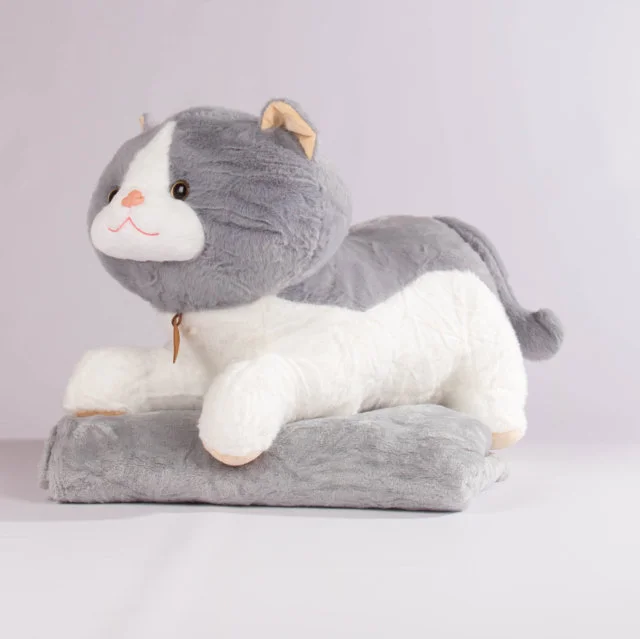 Un tierno cojín en forma de gatito con expresión dulce y suave textura, ideal para acompañarte en tus momentos de descanso. Viene con una cobija que se guarda fácilmente en su interior, lo que lo convierte en una opción funcional, decorativa y encantadora.