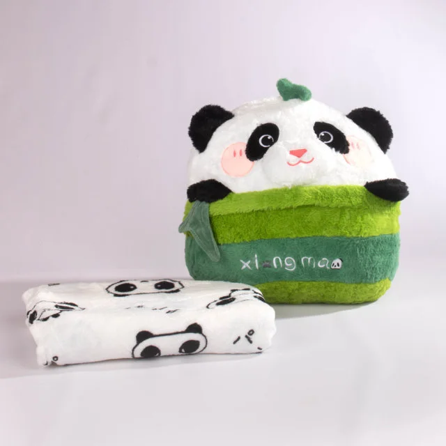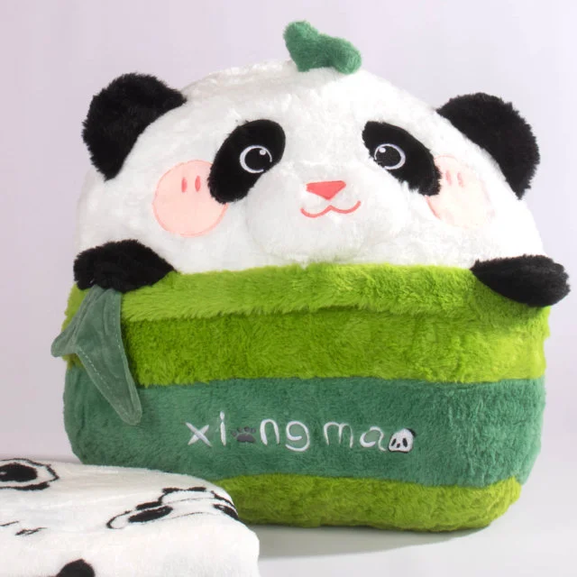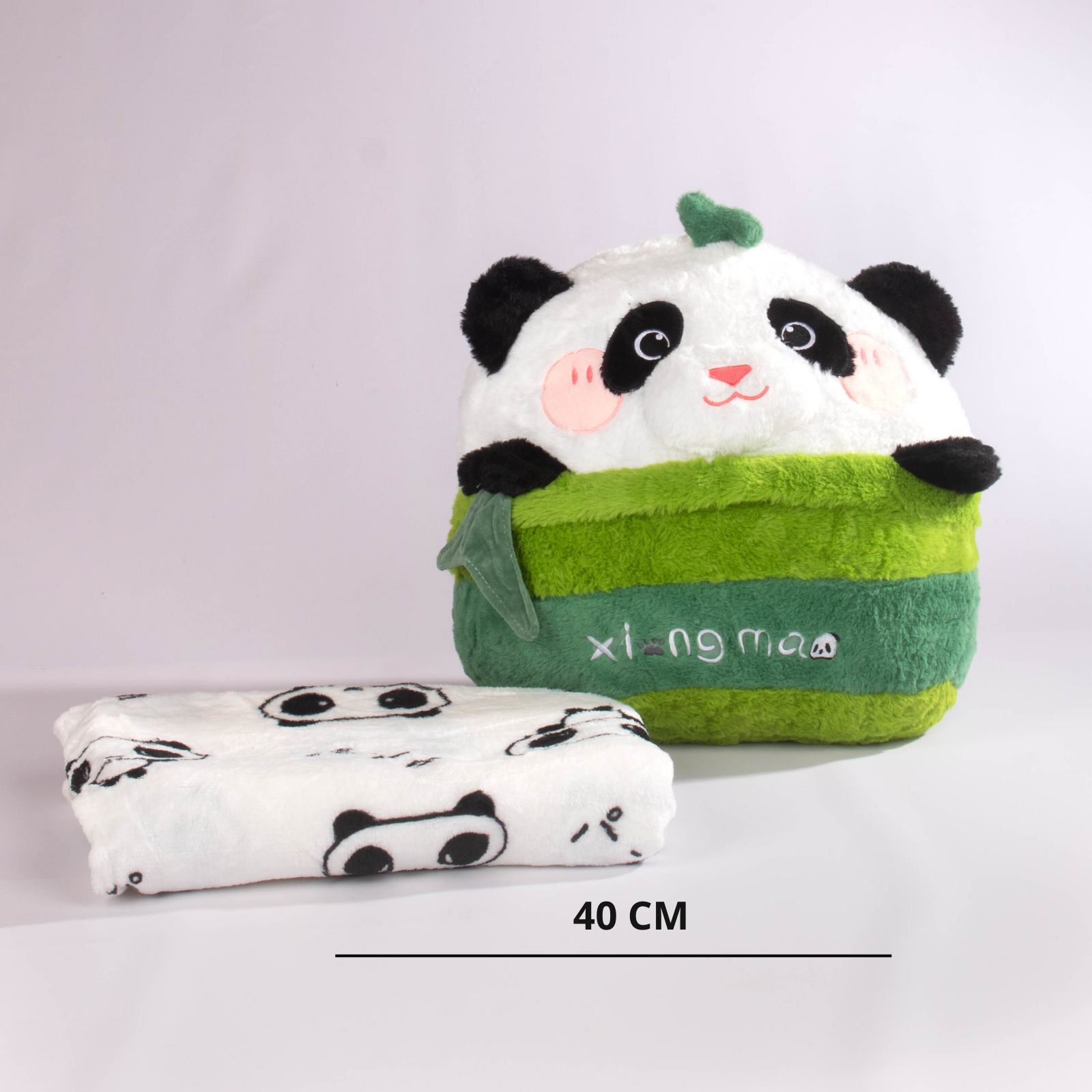 Este encantador cojín con diseño de panda es perfecto para quienes buscan comodidad y ternura en un solo producto. Su forma redondeada y rostro expresivo lo hacen ideal para decorar tu cama o sofá. Además, incluye una suave cobija guardada en su interior, lista para brindarte abrigo en cualquier momento.