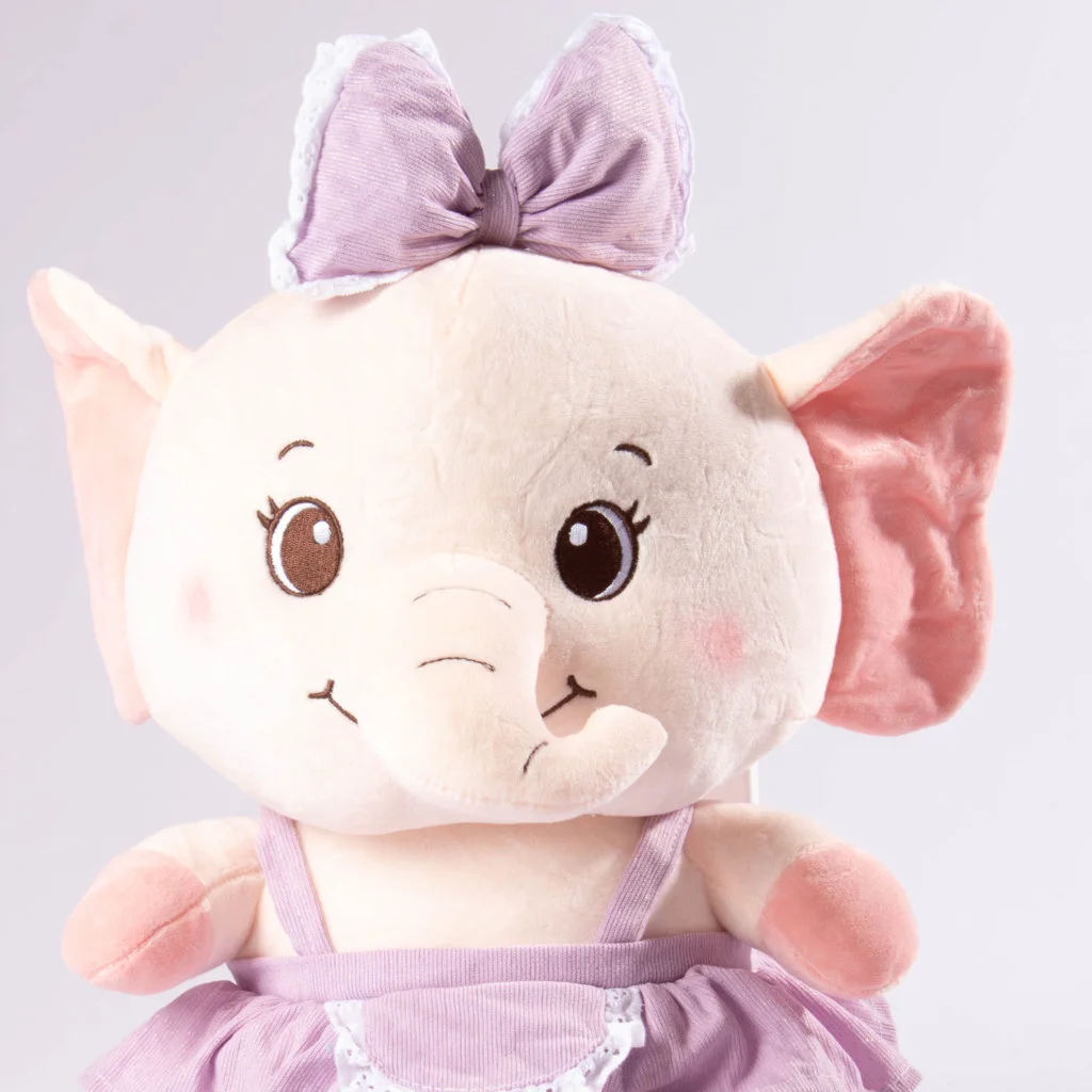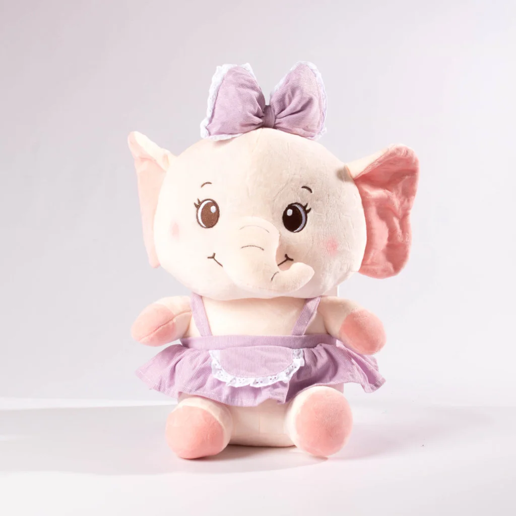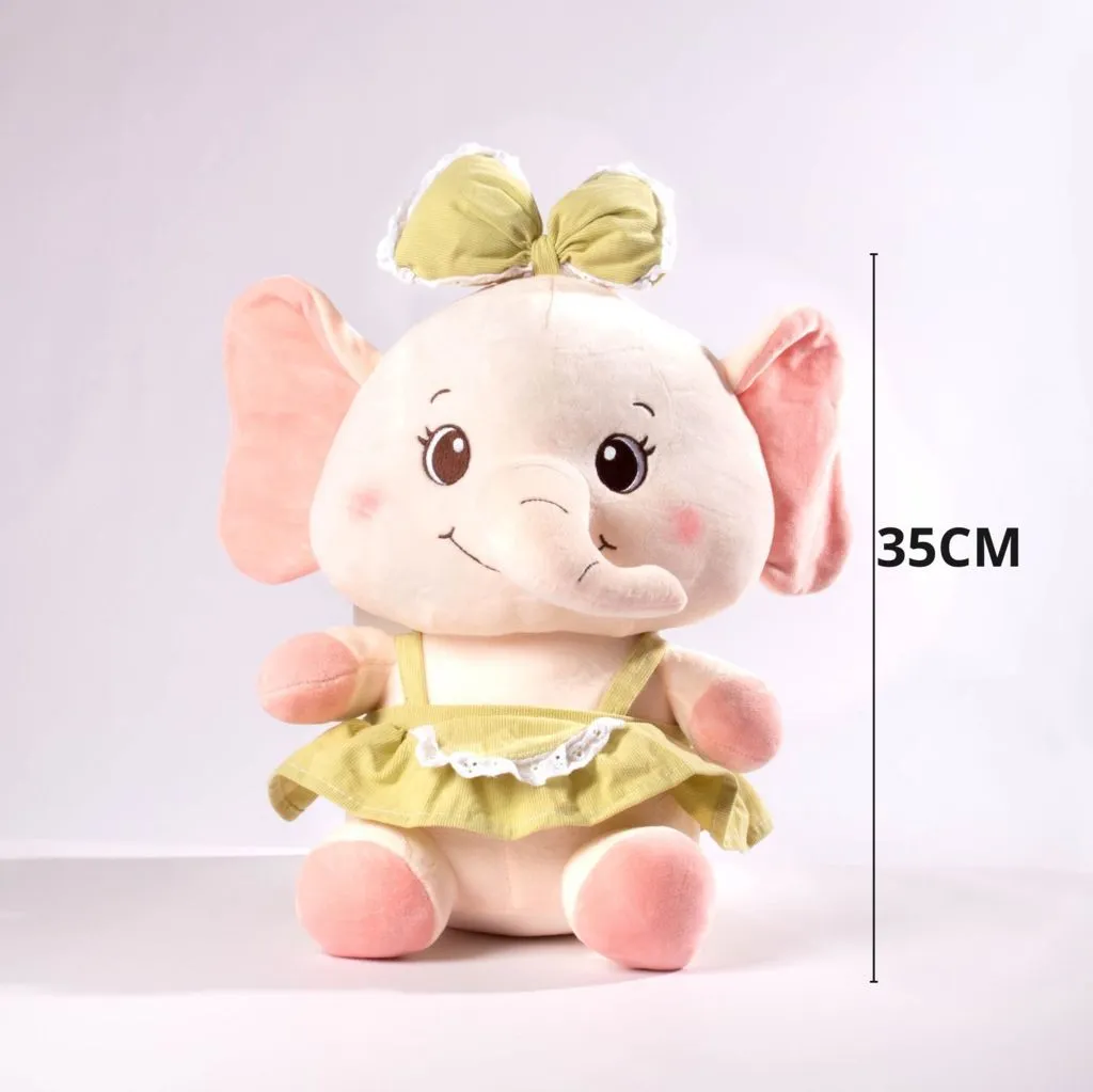 Este tierno peluche de elefante vestido está disponible en 2 adorables colores, ideal para quienes buscan un regalo encantador y lleno de ternura. Con un tamaño de 35 cm, su diseño con vestimenta lo hace aún más especial, siendo perfecto para niños y adultos que disfrutan de los detalles únicos.