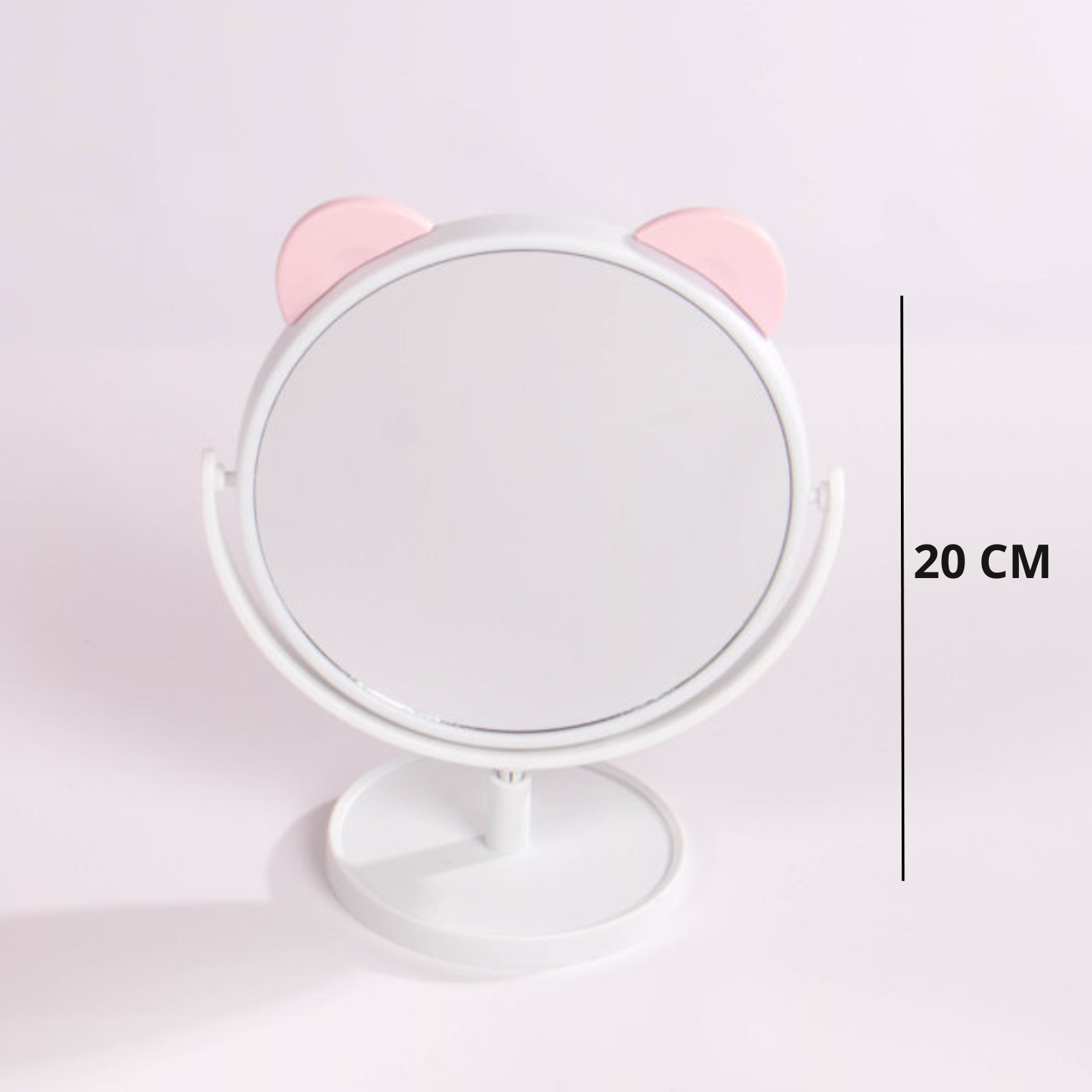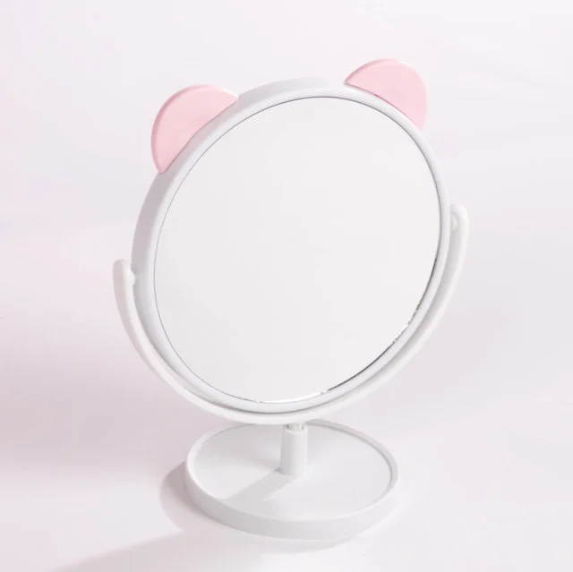 Práctico espejo de tocador con soporte integrado para organizar accesorios como joyas, brochas, cosméticos o pequeños objetos personales. Tamaño 20cm, ideal para escritorios, tocadores o baños. Su diseño funcional y moderno está disponible en dos colores, lo que permite combinarlo fácilmente con diferentes estilos de decoración. Compacto, estable y fácil de limpiar.