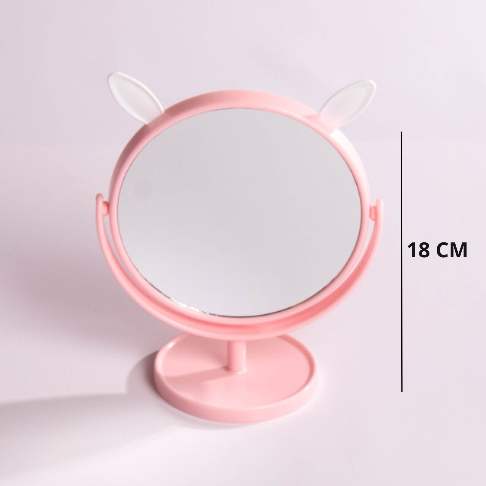 Práctico espejo de tocador con soporte integrado para organizar accesorios como joyas, brochas, cosméticos o pequeños objetos personales. Tamaño 18cm, ideal para escritorios, tocadores o baños. Su diseño funcional y moderno está disponible en dos colores, lo que permite combinarlo fácilmente con diferentes estilos de decoración. Compacto, estable y fácil de limpiar.