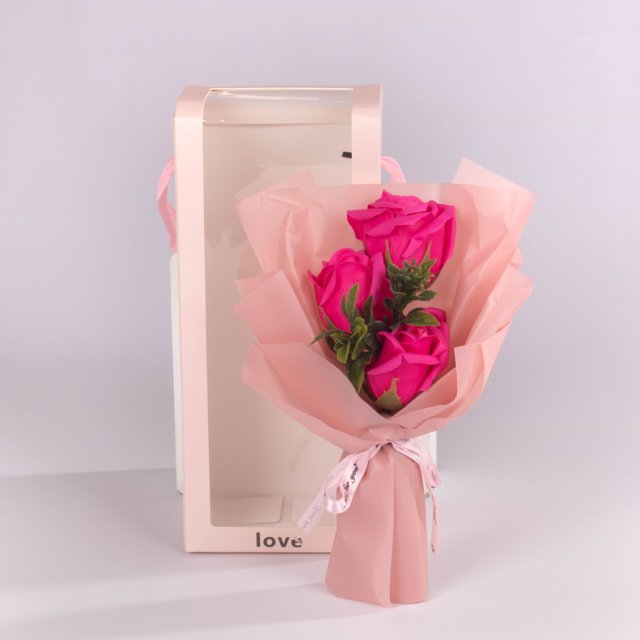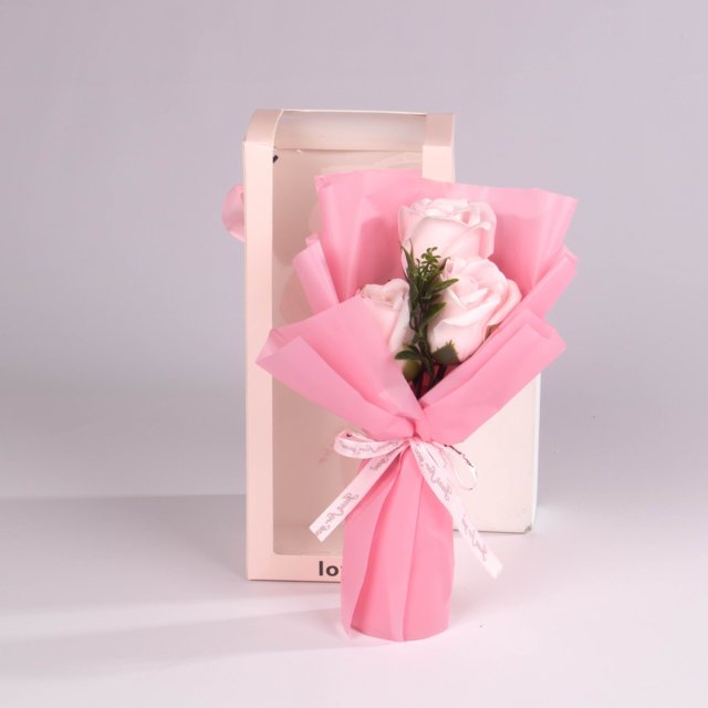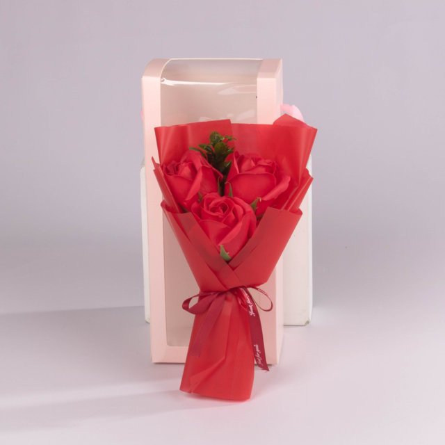 Cada flor viene cuidadosamente empacada en una elegante bolsa blanca con ventana frontal, lista para obsequiar o decorar tus espacios. Su diseño combina pétalos realistas, cintas de tela y un toque floral que ilumina cualquier rincón del hogar u oficina.