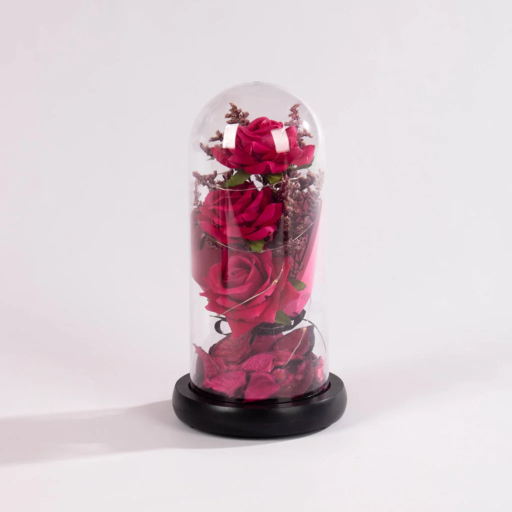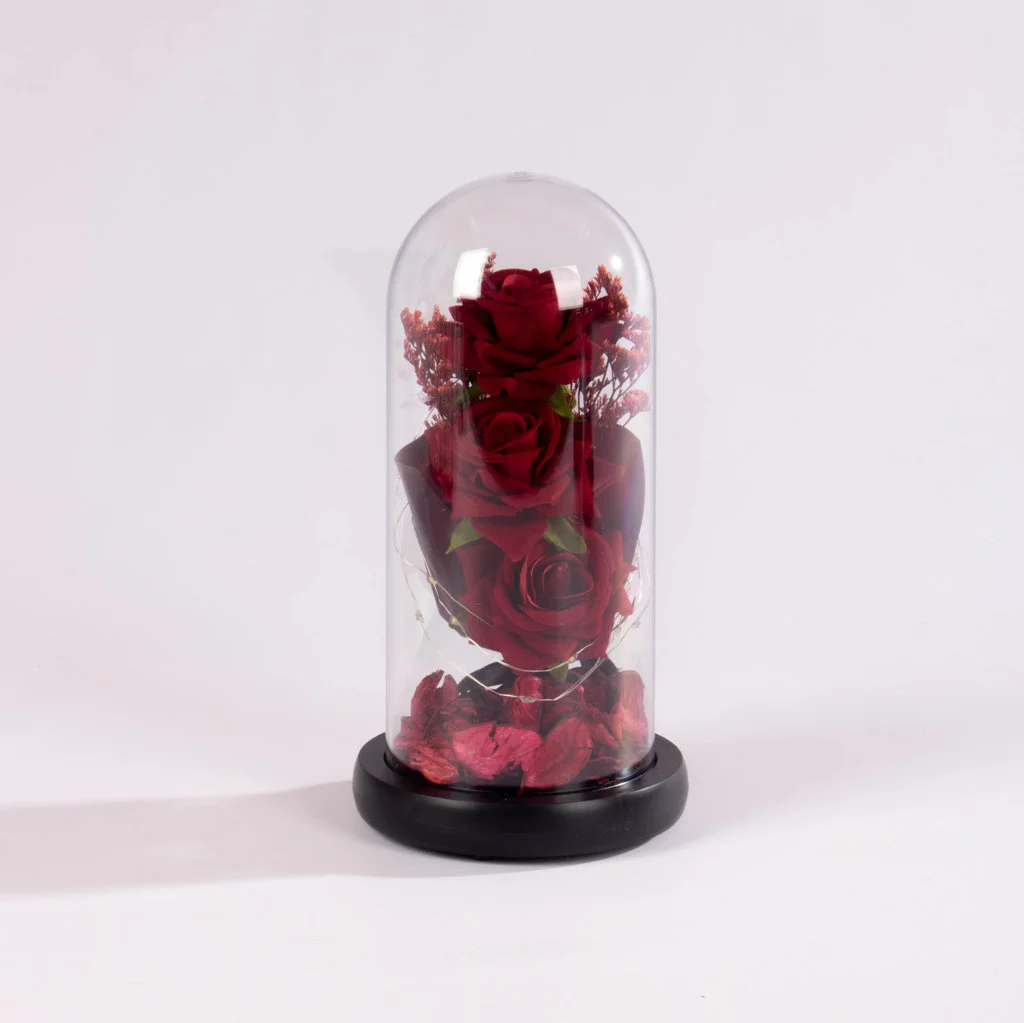 Rosa eterna artificial en 3 colores diferentes, tamaño 11×22 cm, también viene con luz LED. Puedes elegir tu color favorito. Soy la opción ideal para esos momentos donde deseas que tu regalo perdure por toda la eternidad. Mi apariencia real te hará sentir que estás obsequiando una rosa natural.