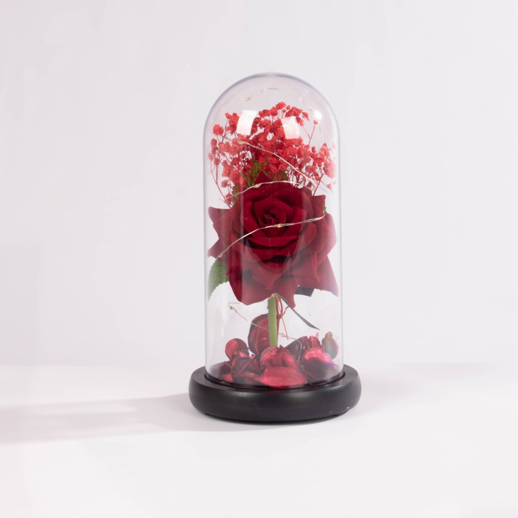 Rosa eterna artificial en 3 colores diferentes, tamaño 11×22 cm, también viene con luz LED. Puedes elegir tu color favorito. Soy la opción ideal para esos momentos donde deseas que tu regalo perdure por toda la eternidad. Mi apariencia real te hará sentir que estás obsequiando una rosa natural.