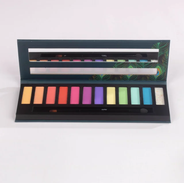 Contenido: 11 sombras compactas en acabado mate y 1 sombra glitter decorativa