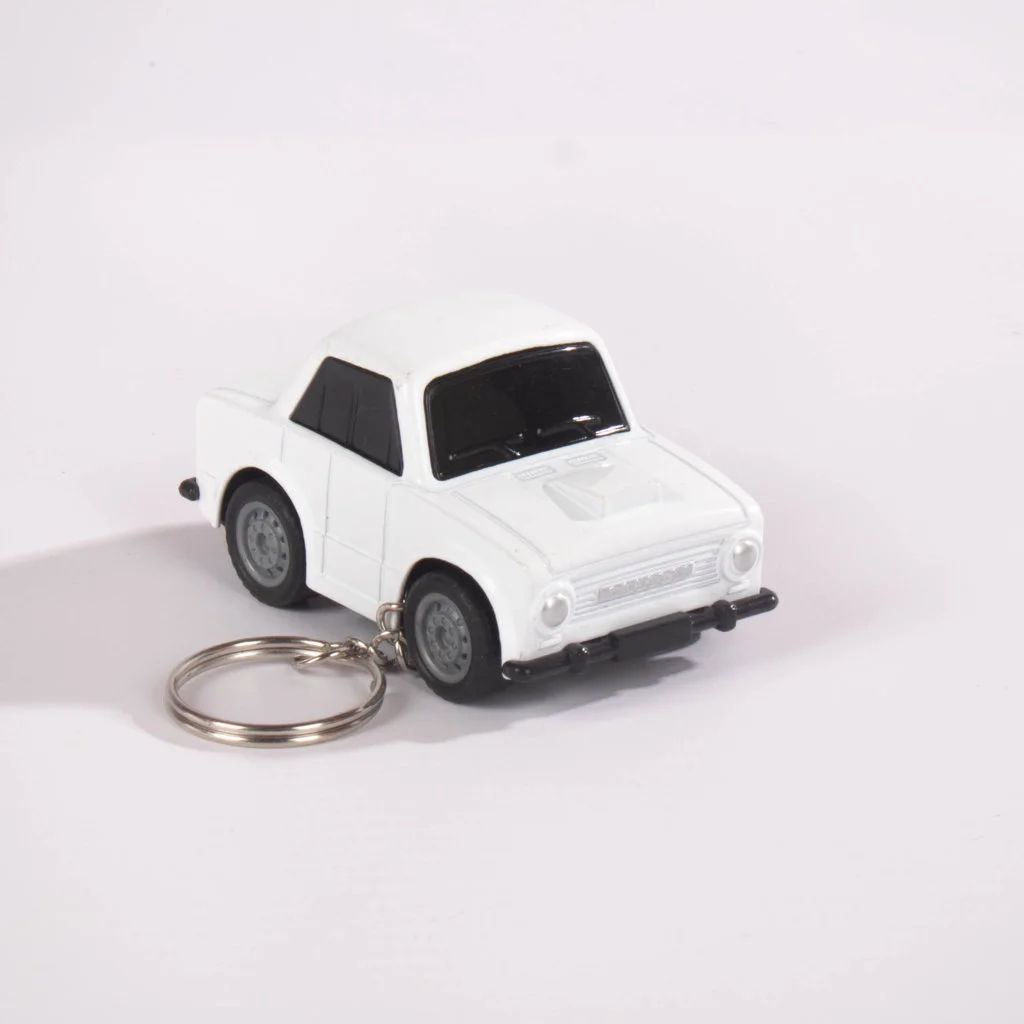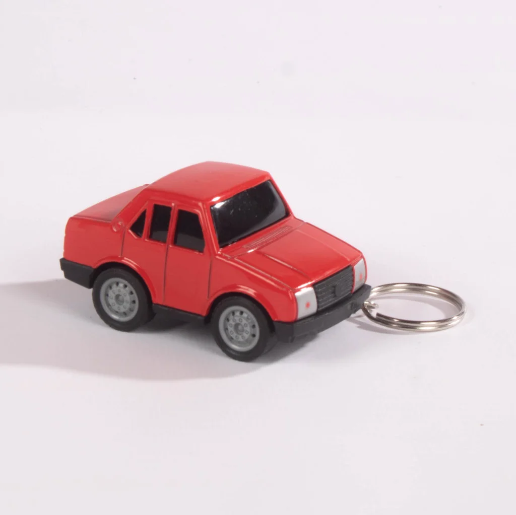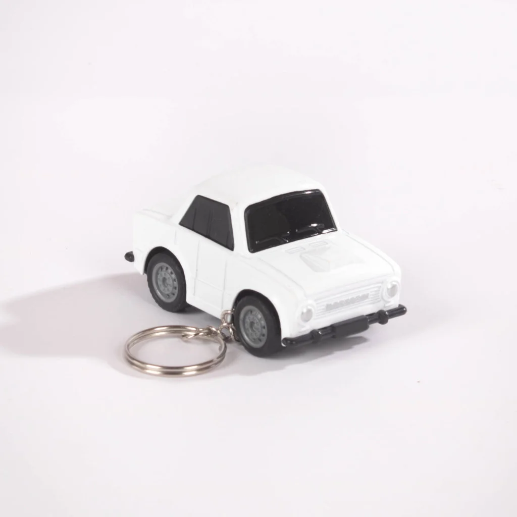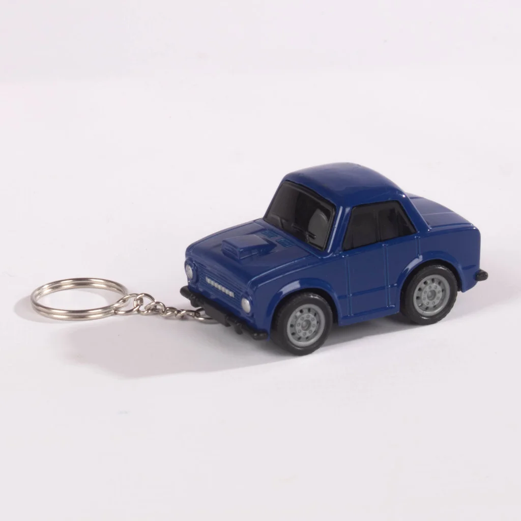 Llavero decorativo compuesto por mini réplicas de automóviles en 3 colores disponibles.