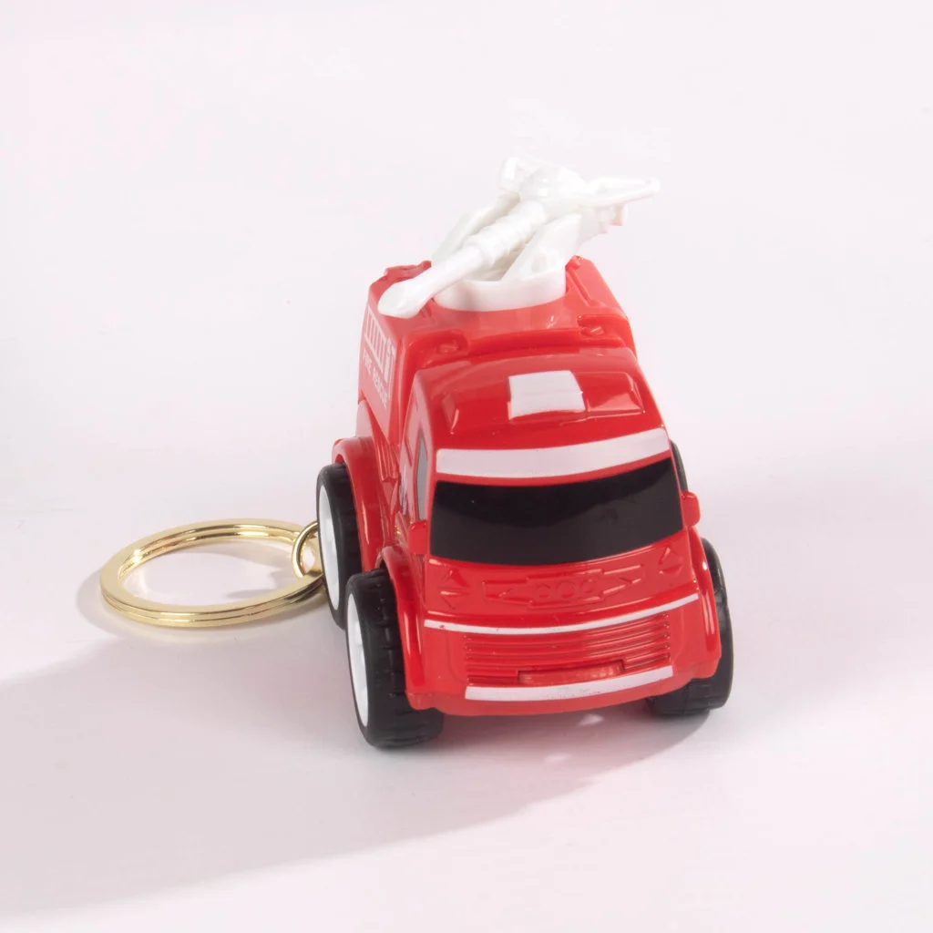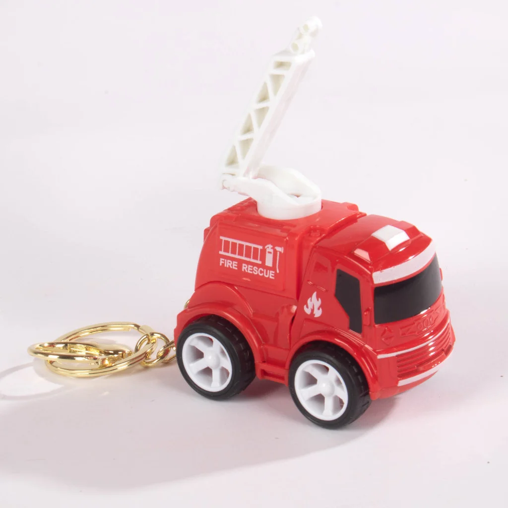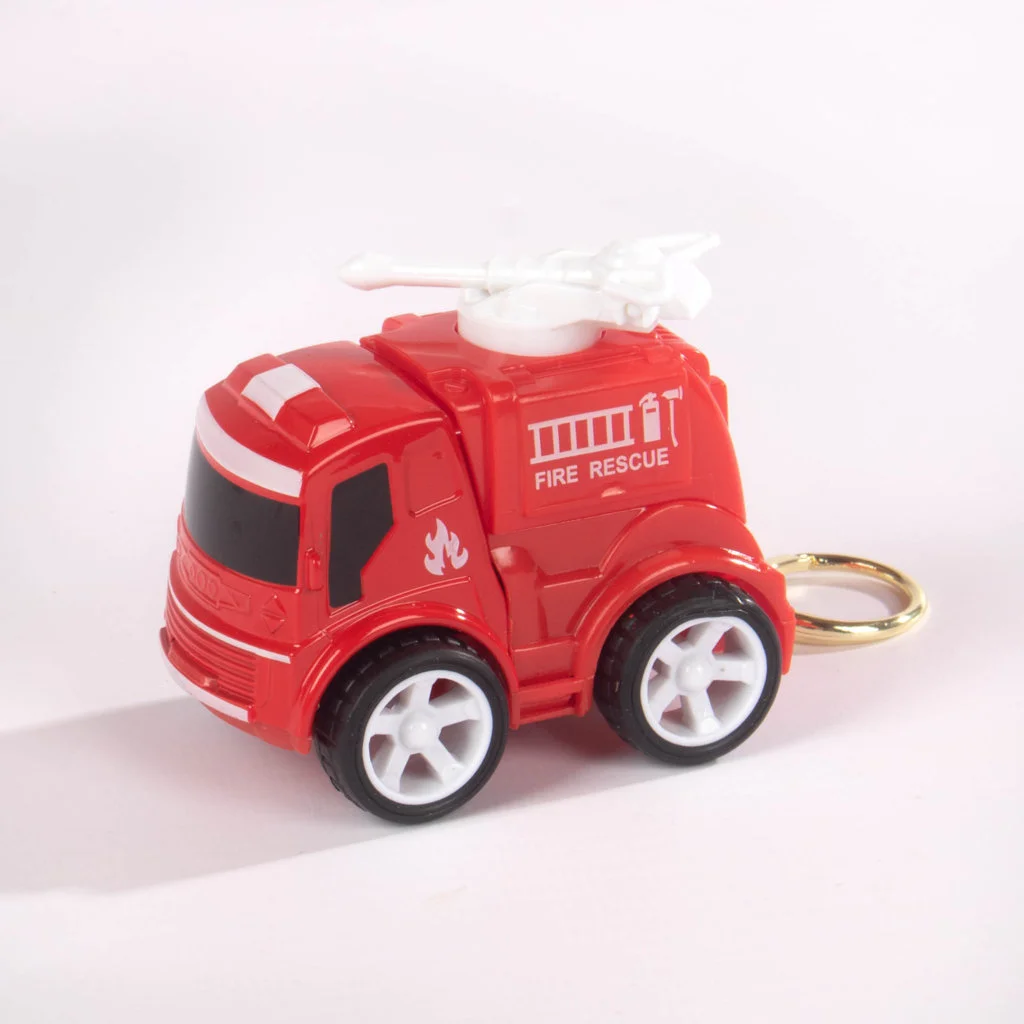 Llavero decorativo compuesto por mini réplicas de carro de bomberos en 4 diseños disponibles.