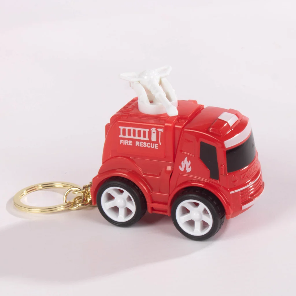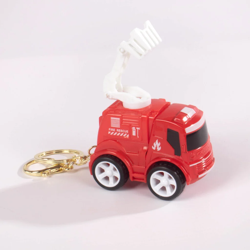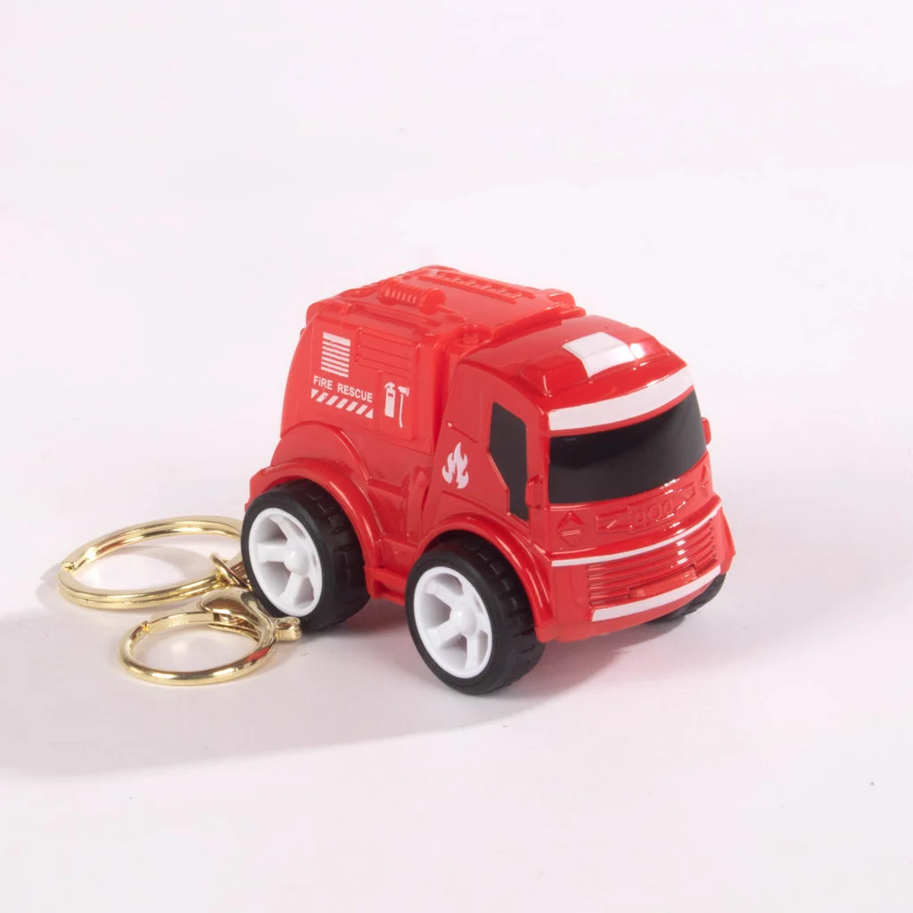 Llavero decorativo compuesto por mini réplicas de carro de bomberos en 4 diseños disponibles.