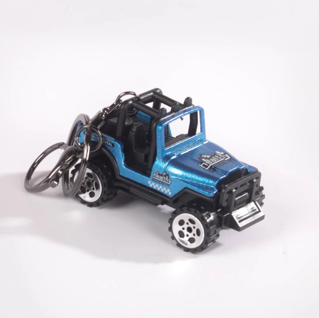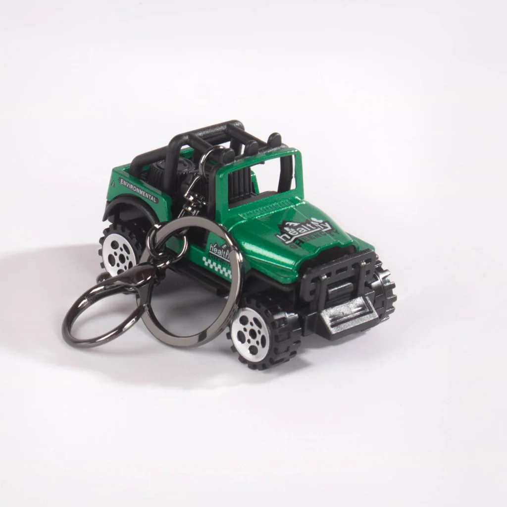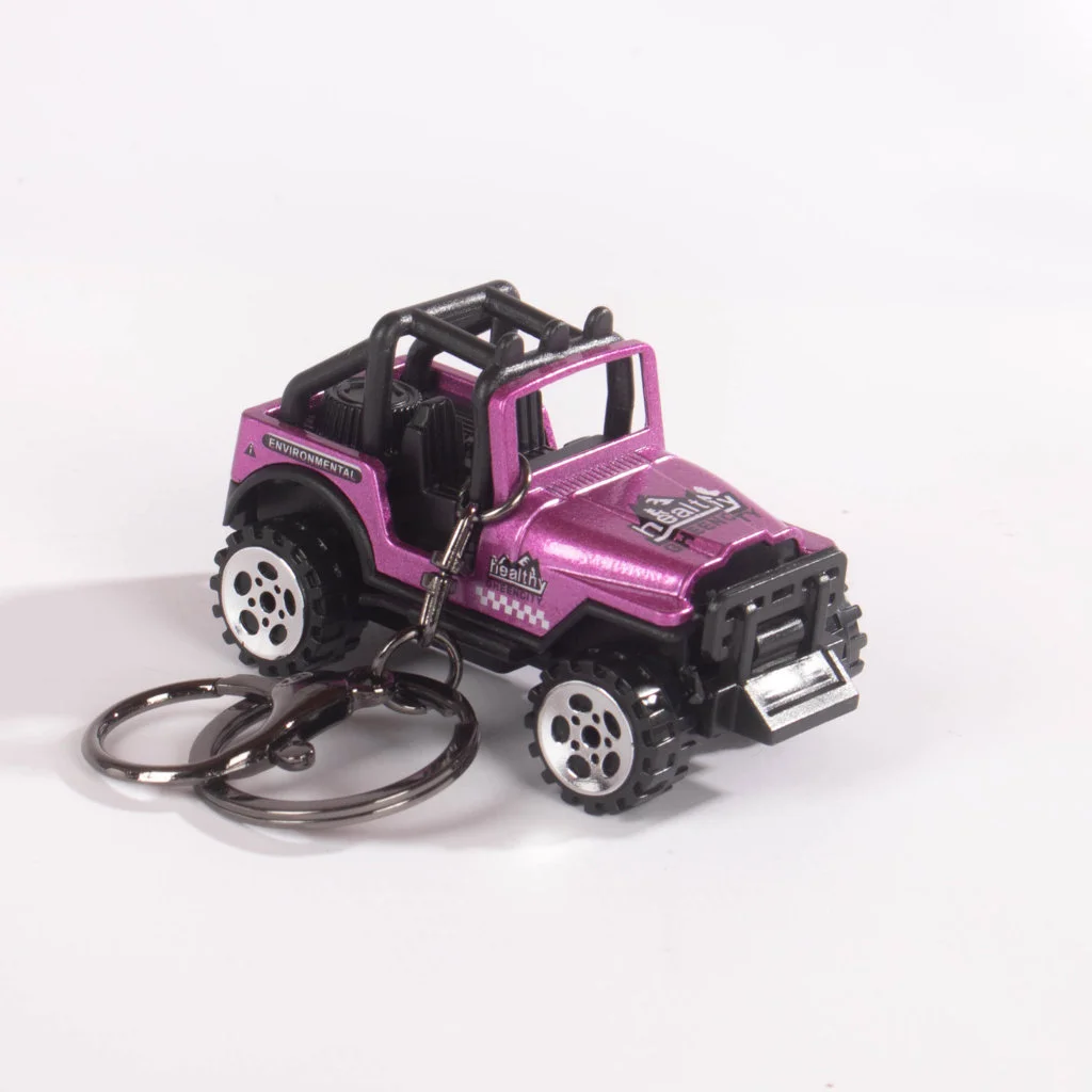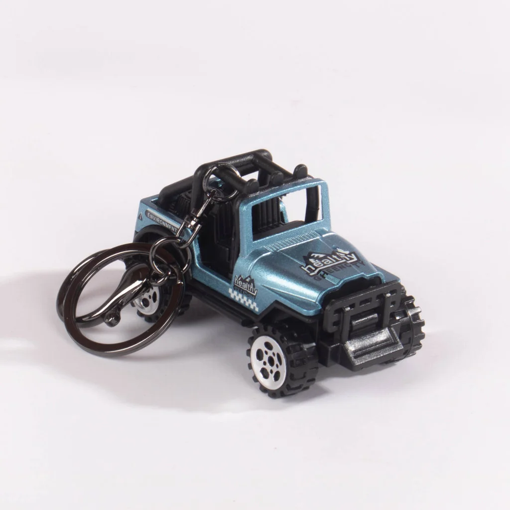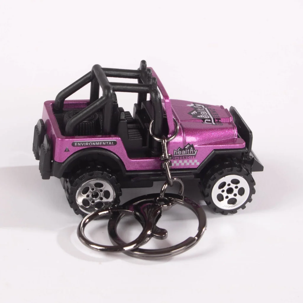 Llavero decorativo compuesto por mini réplicas de carros campero en 4 colores disponibles.