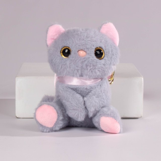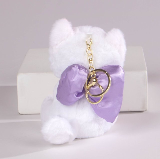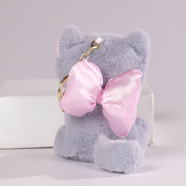 Llavero de gato de peluche de 13 cm con un diseño tierno y elegante. Incluye un corbatín decorativo que le da un toque especial y divertido, ideal para llevar como accesorio en bolsos, mochilas o llaves. Disponible en cuatro colores: café, gris, negro y blanco.
