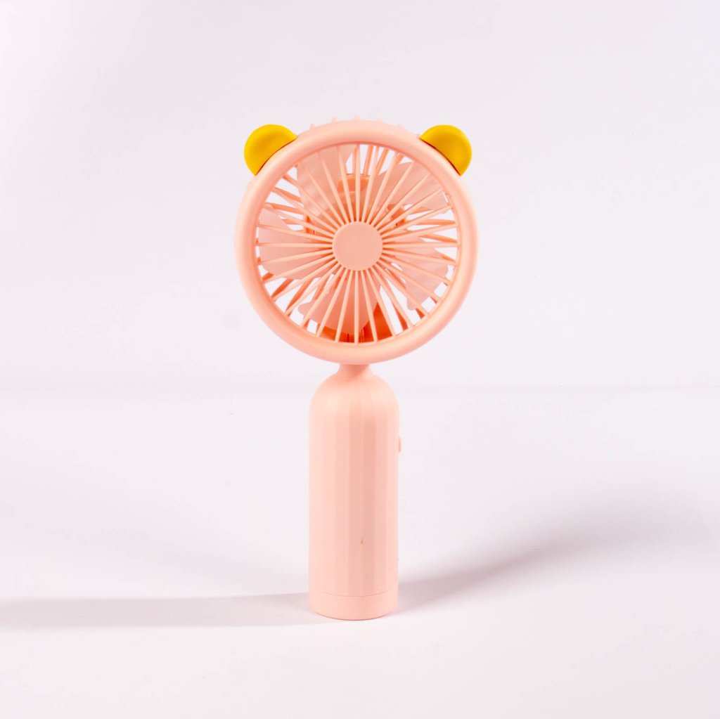 Mini ventilador recargable con soporte incorporado, disponible en 3 colores surtidos para que elijas el de tu preferencia. Es una opción práctica y portátil para refrescarte en cualquier momento del día, ideal para el hogar, la oficina o para llevar en viajes, mide 21 cm.