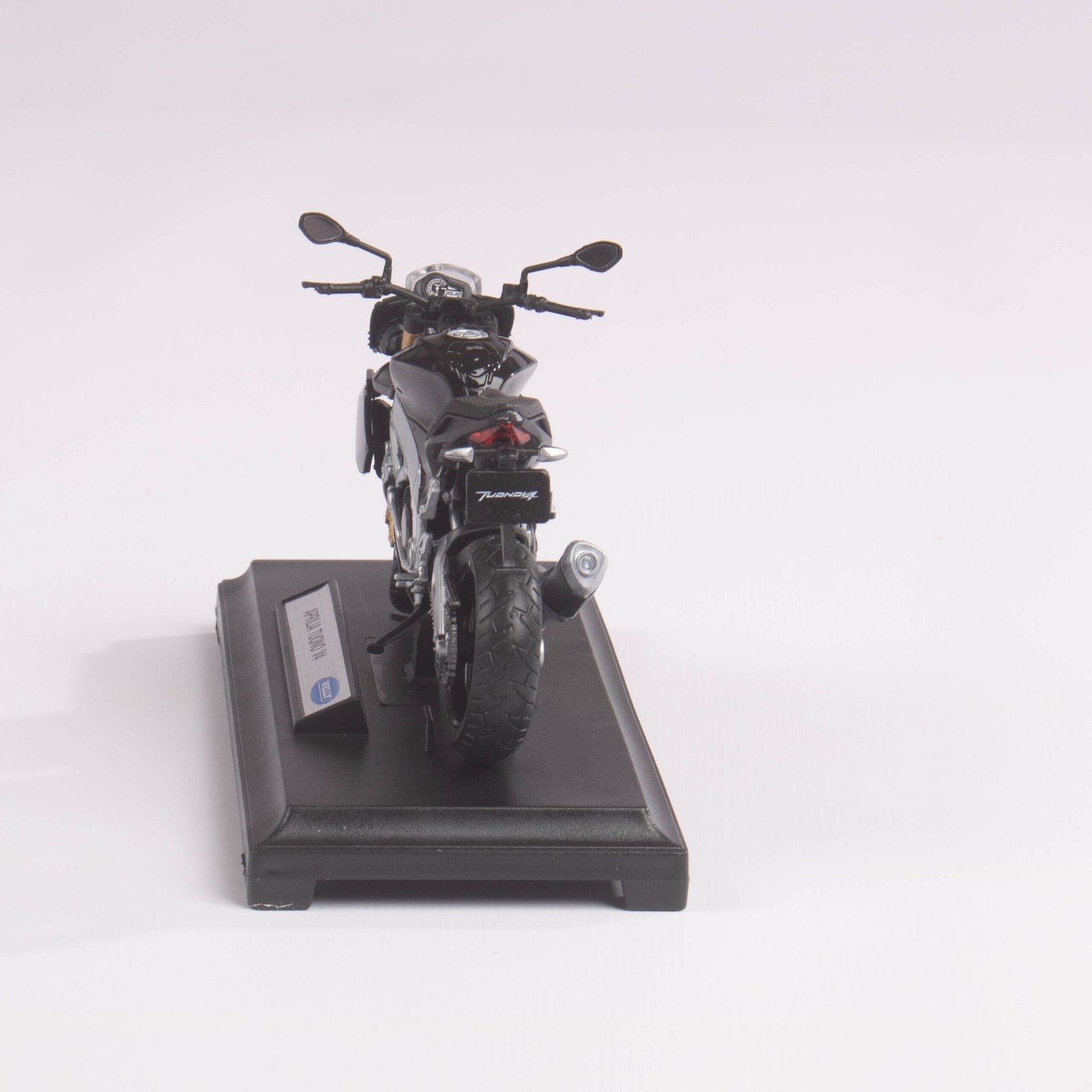 Replica oficial de la motocicleta Aprilia Tuono V4 en escala 1:18. Destaca por su diseño naked deportivo y detalles realistas que representan la potencia y estilo de la versión original. Ideal para coleccionistas y fanáticos del motociclismo italiano.