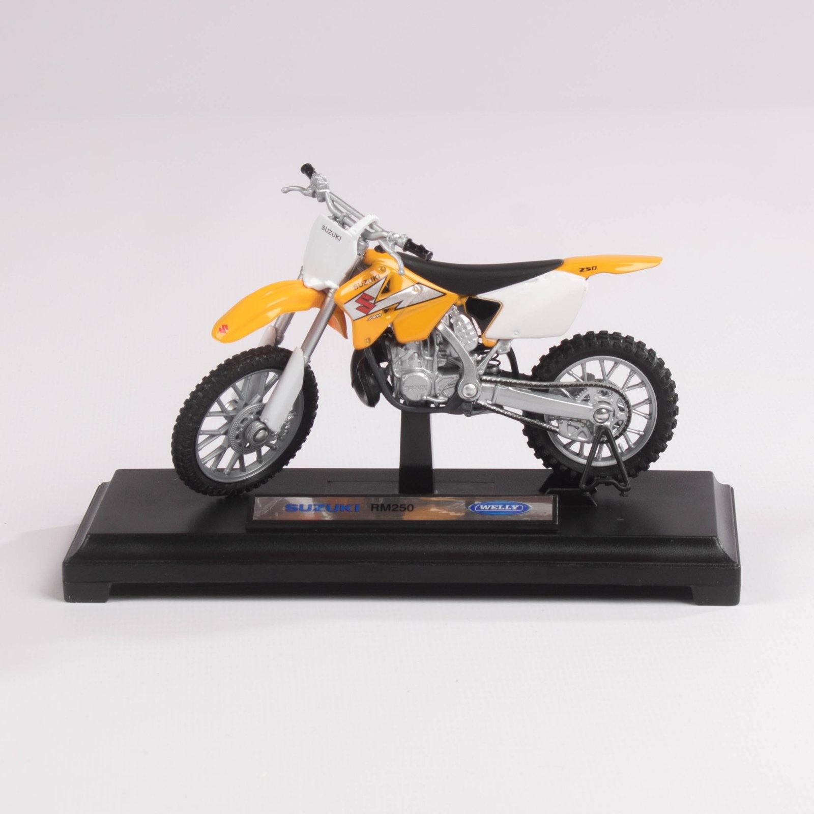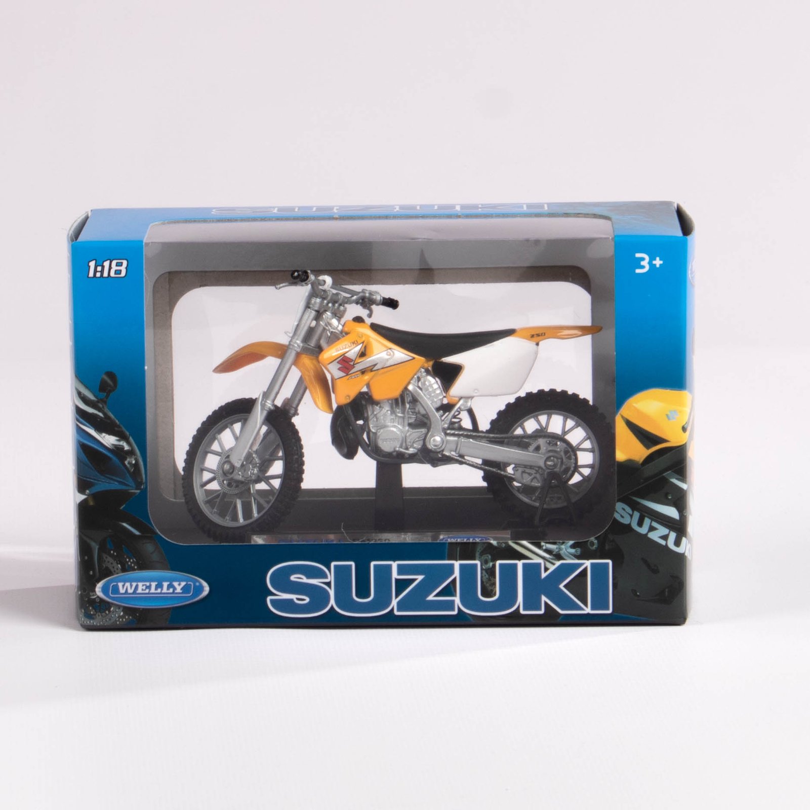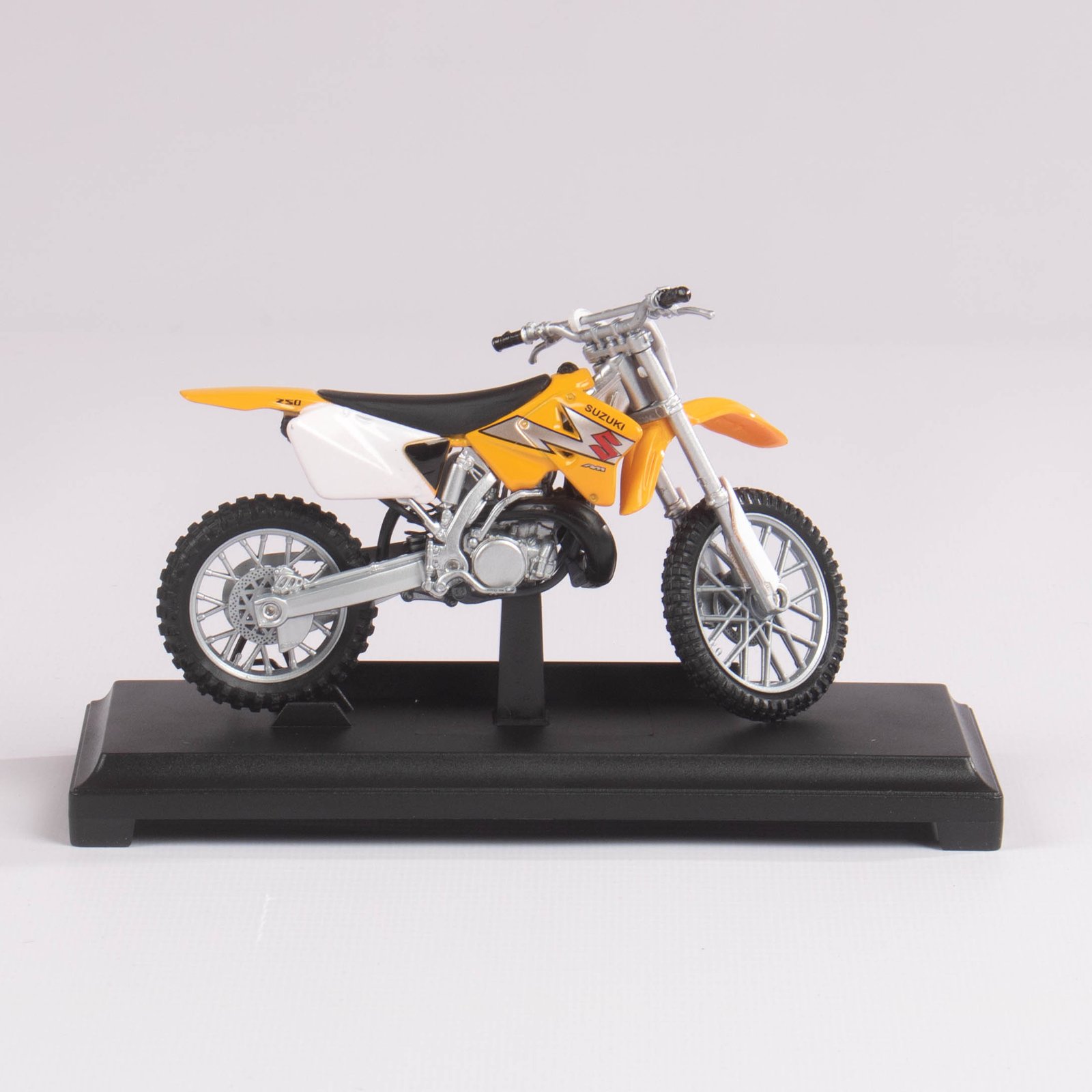 Replica coleccionable de la motocicleta Suzuki RM250 en escala 1:18. Diseñada con gran nivel de detalle, ideal para exhibición, decoración o como pieza de colección. Su acabado realista la convierte en un artículo imprescindible para los amantes de las motos y los coleccionistas de miniaturas.