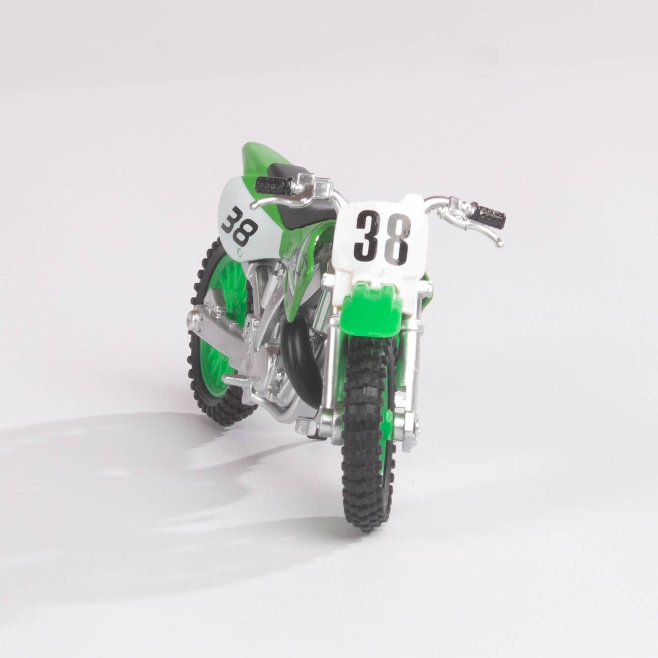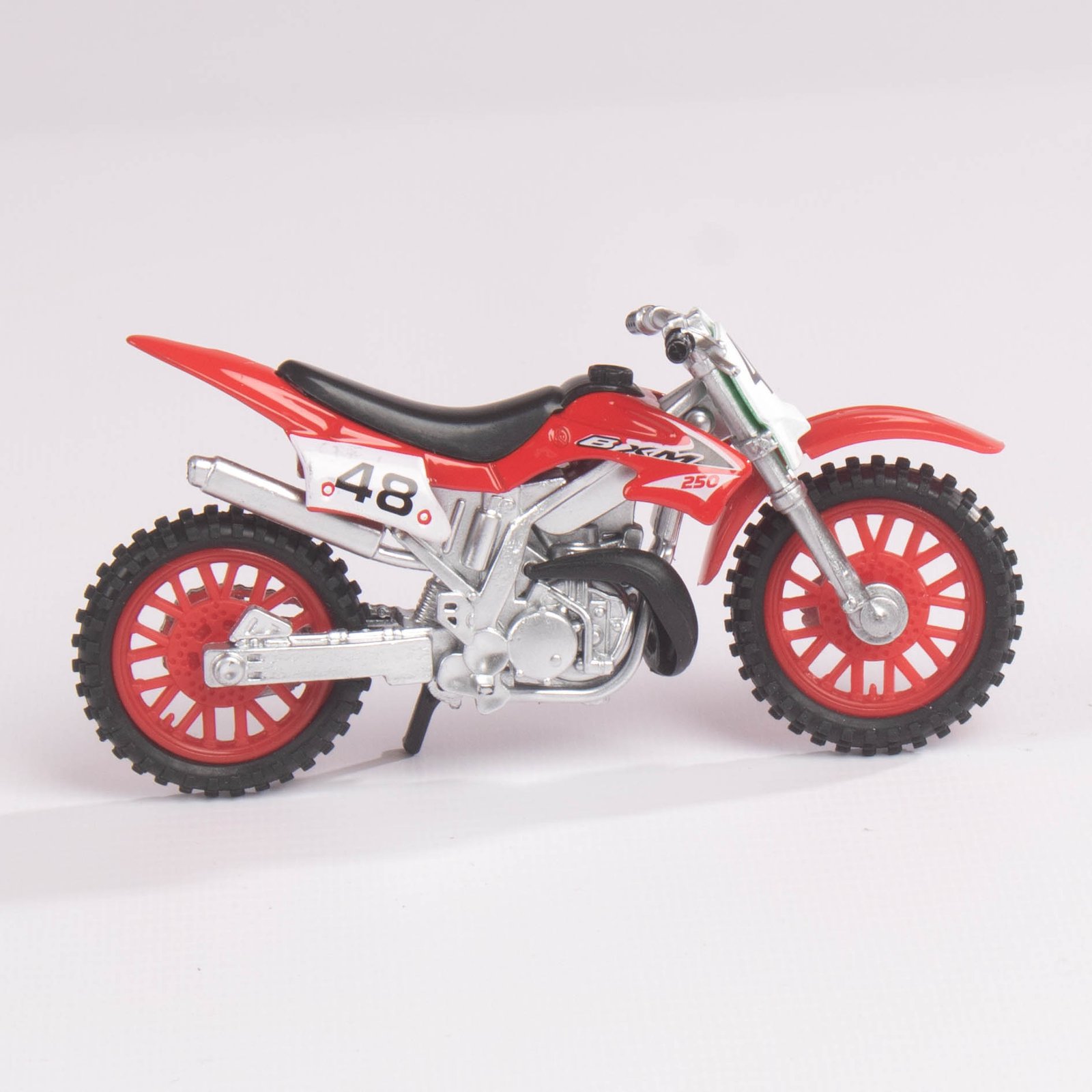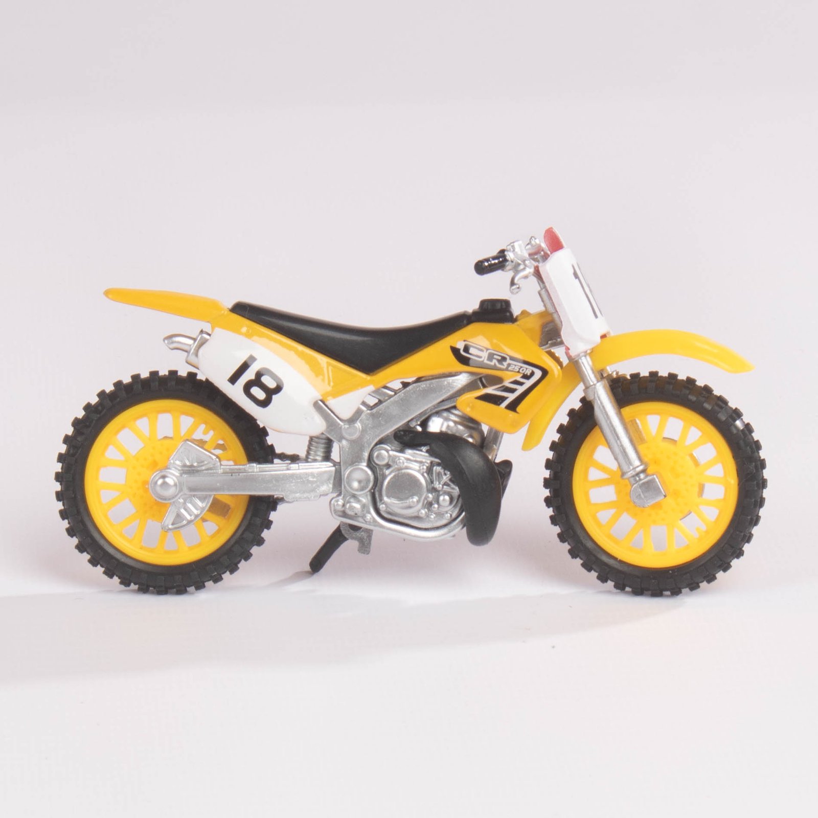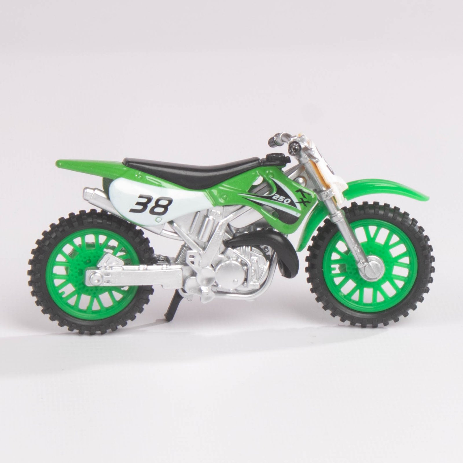 Modelos de motocicletas de motocross en presentación individual, disponibles en diferentes colores (verde, rojo, azul y amarillo). Cada pieza está diseñada con detalles realistas y un estilo deportivo que refleja la adrenalina del motocross. Ideales como artículos de colección, decoración o regalo para aficionados a las motos todoterreno.