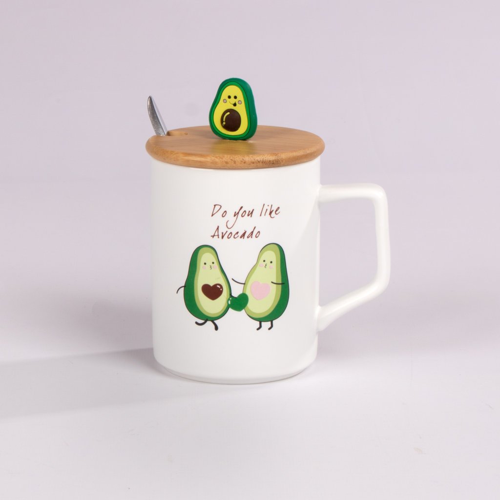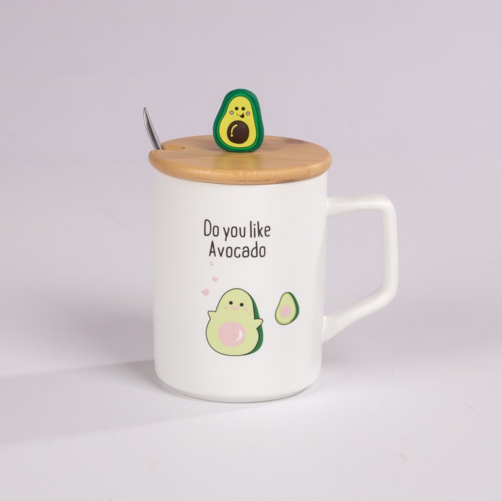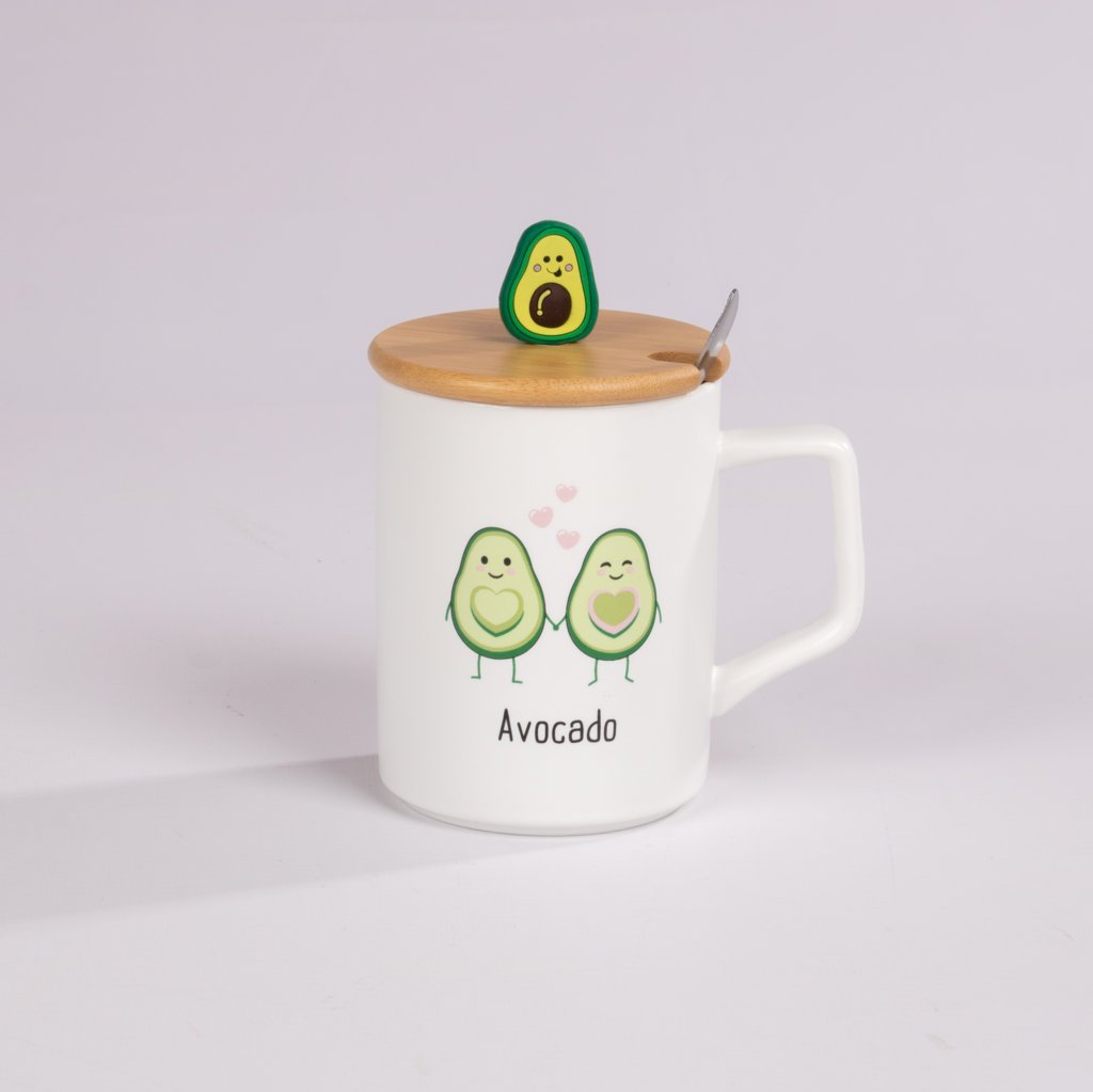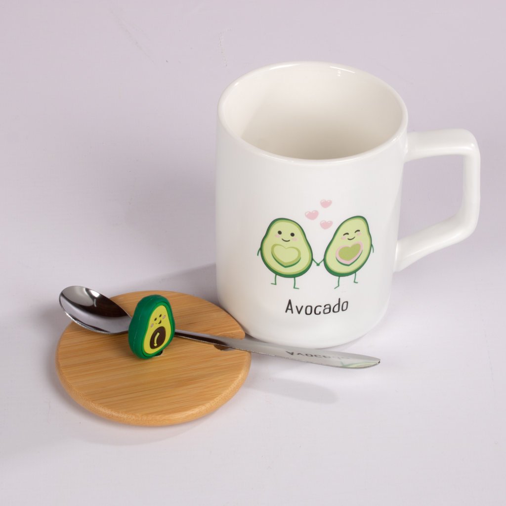 Mug de cerámica con adorables diseños de aguacate y frases divertidas, ideal para quienes aman los detalles tiernos y originales. Incluye tapa decorativa con figura de aguacate y cucharita a juego, lo que lo convierte en una opción práctica y encantadora para disfrutar tus bebidas favoritas. Perfecto para regalar o complementar un combo especial.