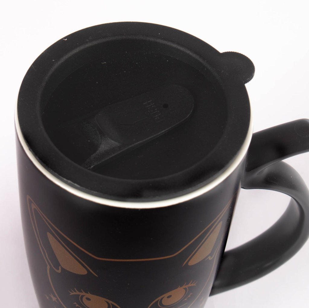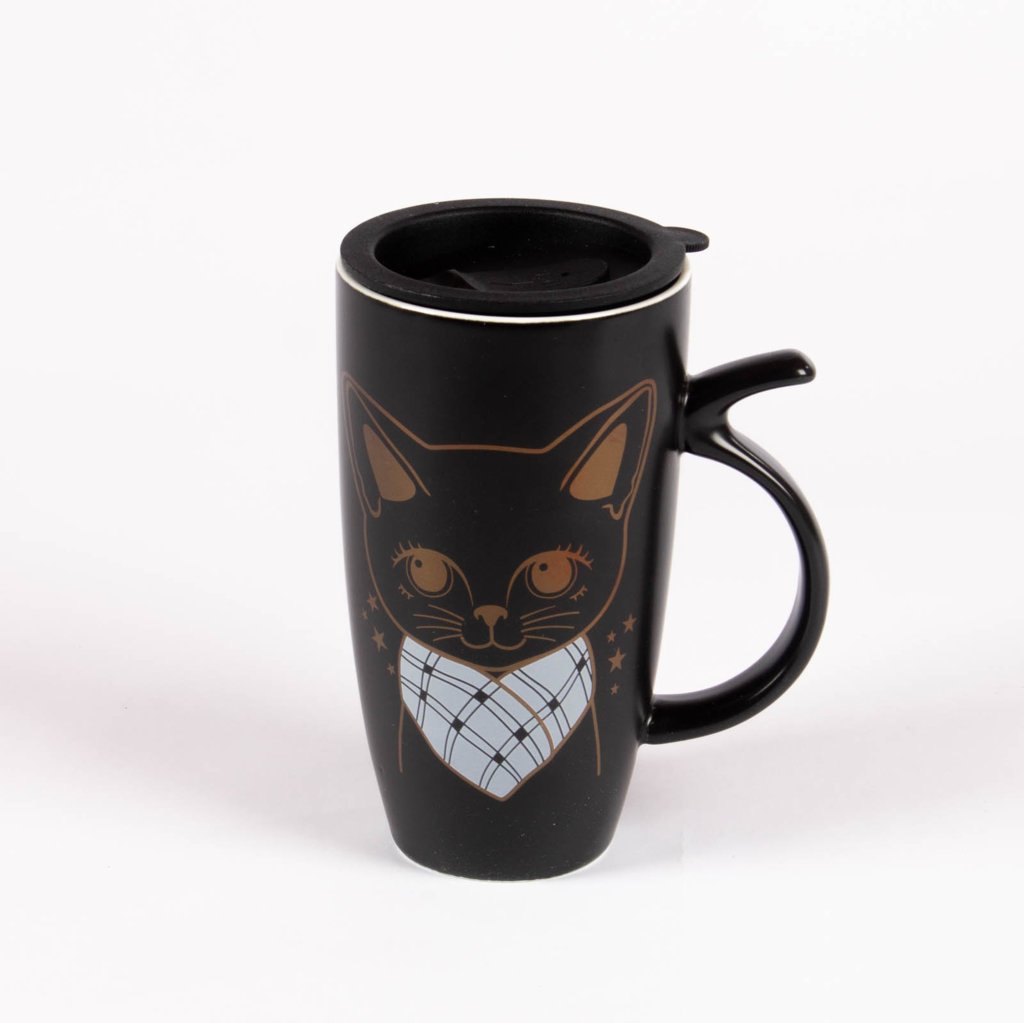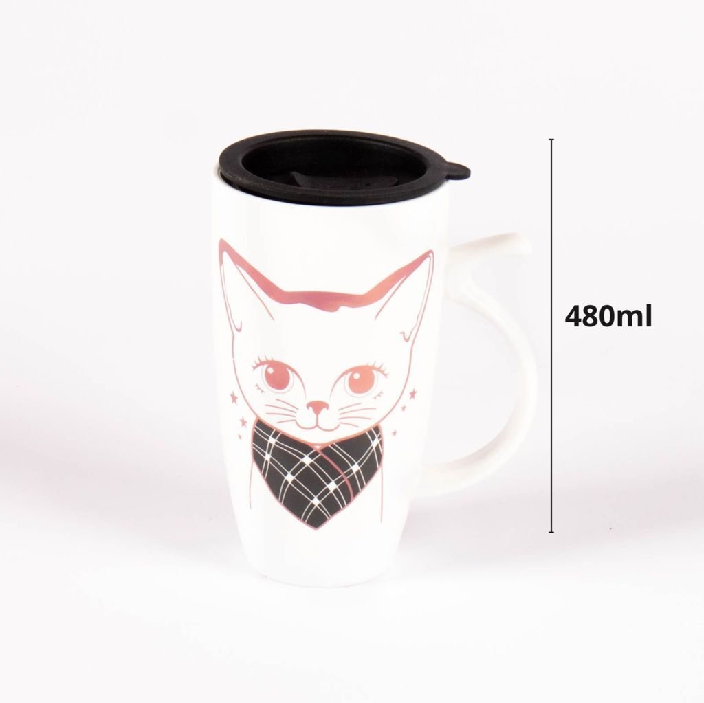 Mug con encantador diseño de gato, disponible en 2 colores y estilos surtidos para que elijas tu favorito. Elaborado en cerámica de alta calidad, es el complemento perfecto para regalar o para disfrutar tus bebidas favoritas con estilo. Cuenta con tapa para mantener el calor por más tiempo, bordes suaves y un mango ancho que proporciona una experiencia cómoda al sostenerlo.