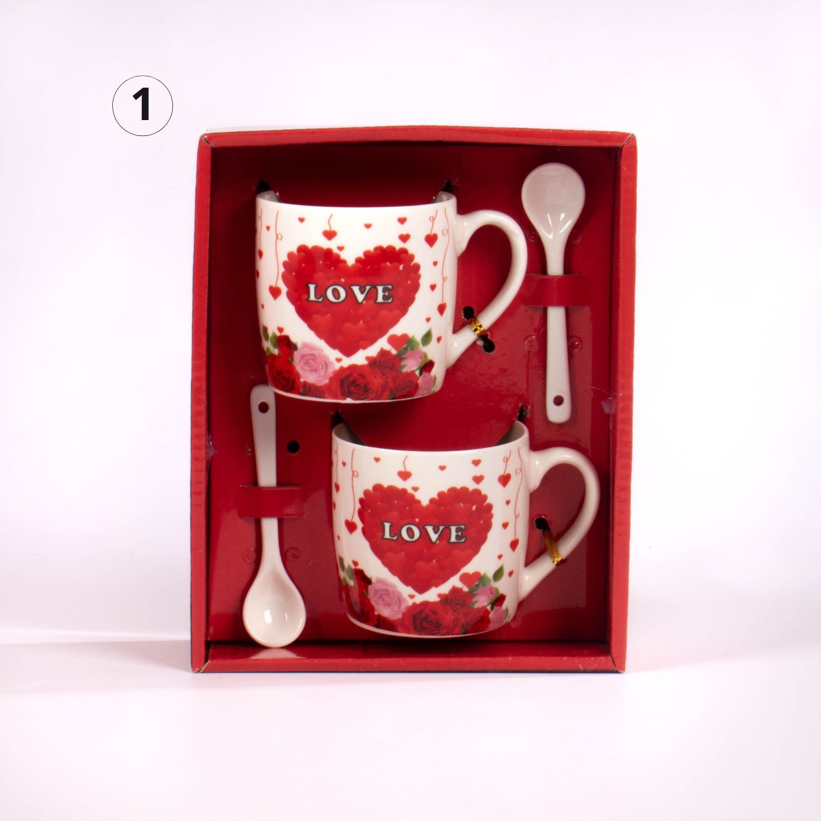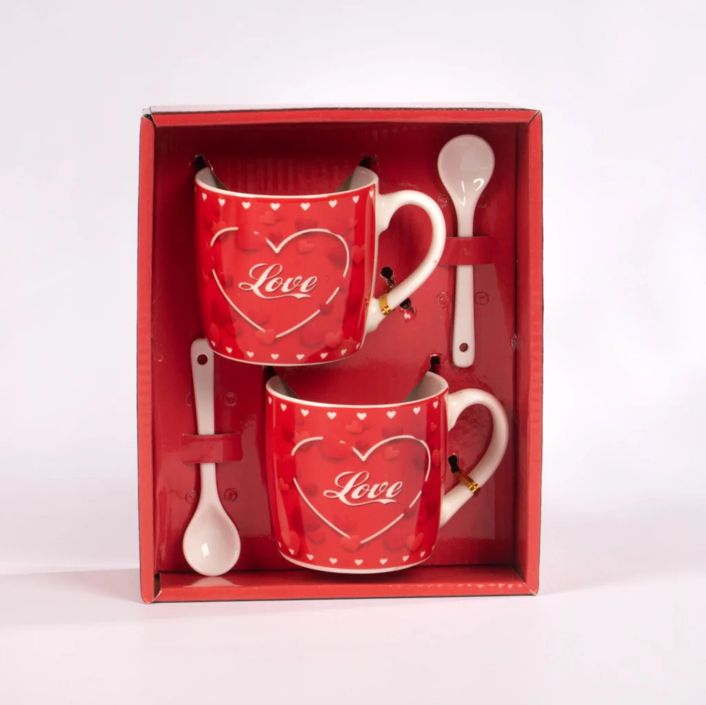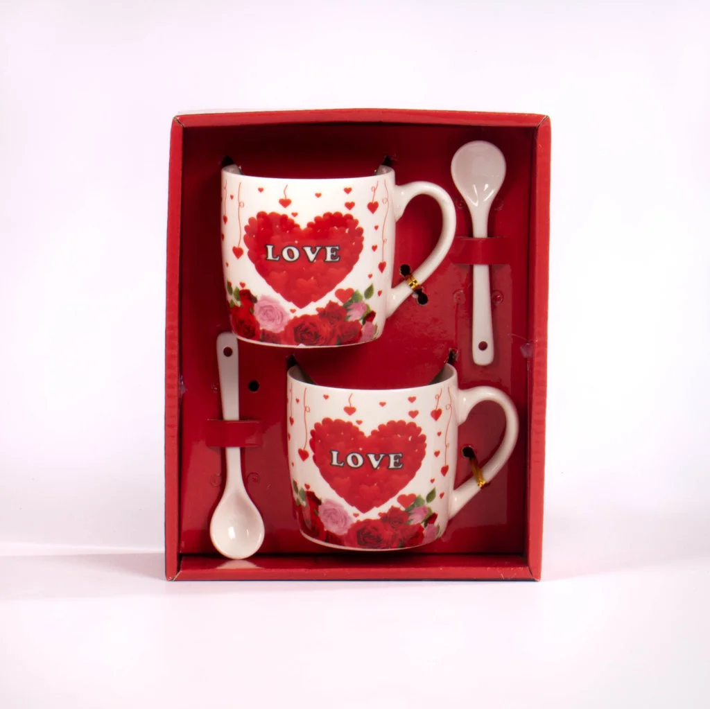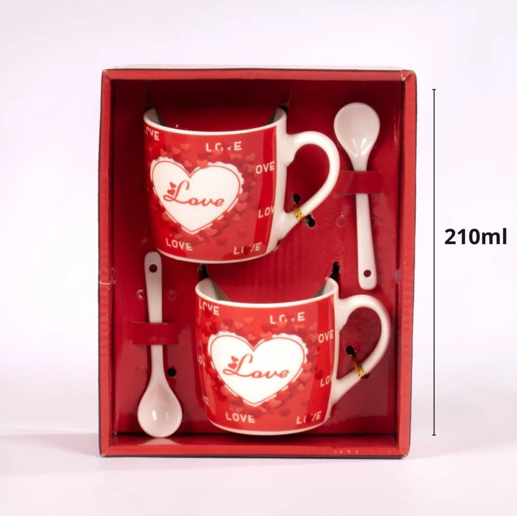 Celebra el amor con este elegante set de tazas Love, diseñado especialmente para parejas. Cada taza cuenta con un diseño minimalista y romántico, acompañado de cucharas decorativas a juego. Todo el conjunto viene presentado en un empaque temático lleno de corazones, ideal para regalar en aniversarios, bodas, San Valentín o como un detalle especial.