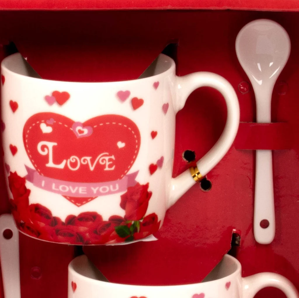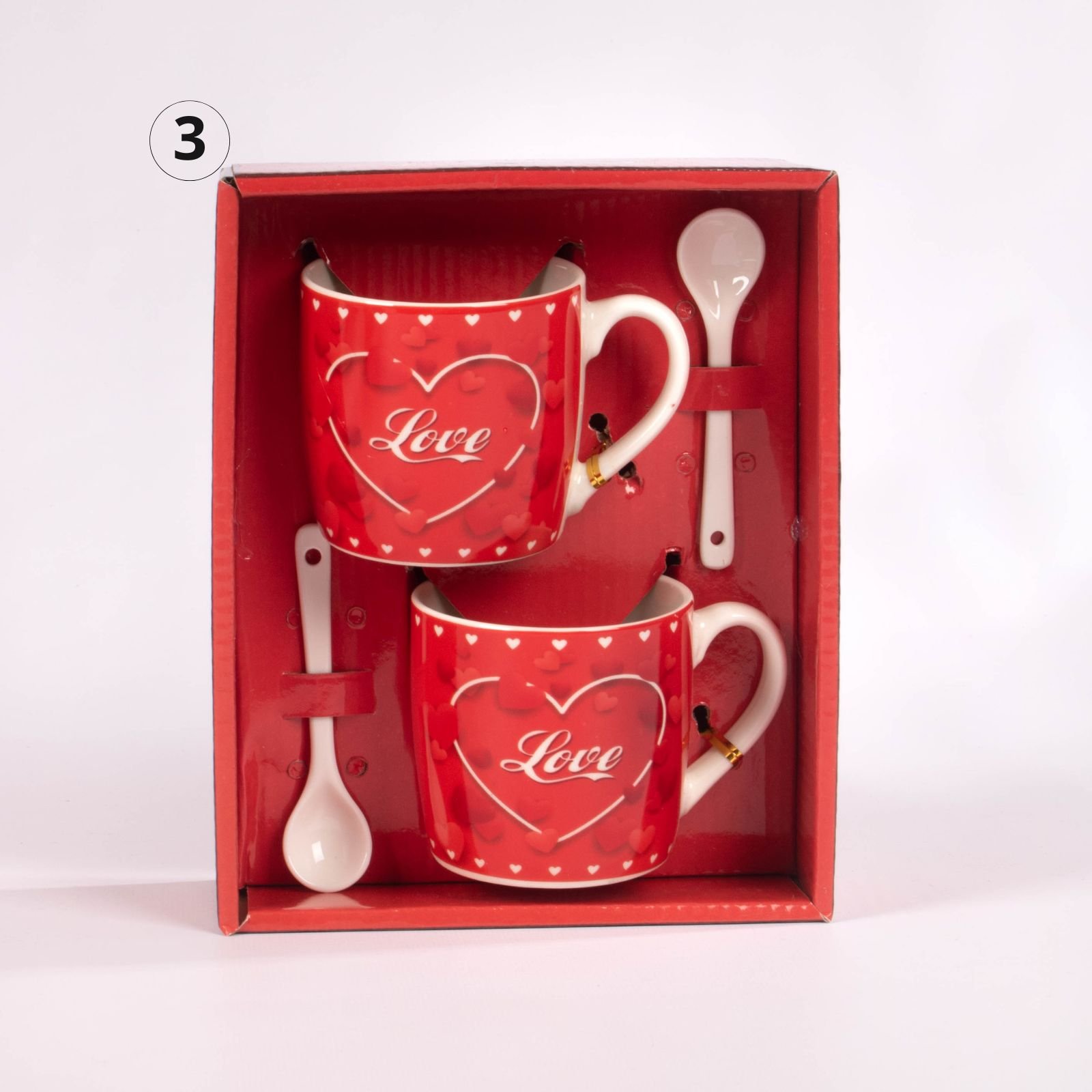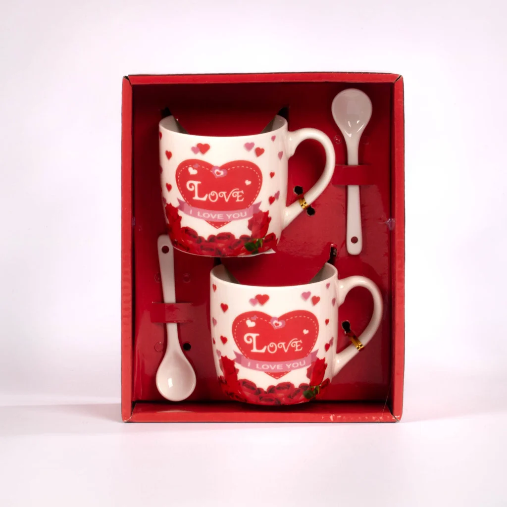 Celebra el amor con este elegante set de tazas Love, diseñado especialmente para parejas. Cada taza cuenta con un diseño minimalista y romántico, acompañado de cucharas decorativas a juego. Todo el conjunto viene presentado en un empaque temático lleno de corazones, ideal para regalar en aniversarios, bodas, San Valentín o como un detalle especial.