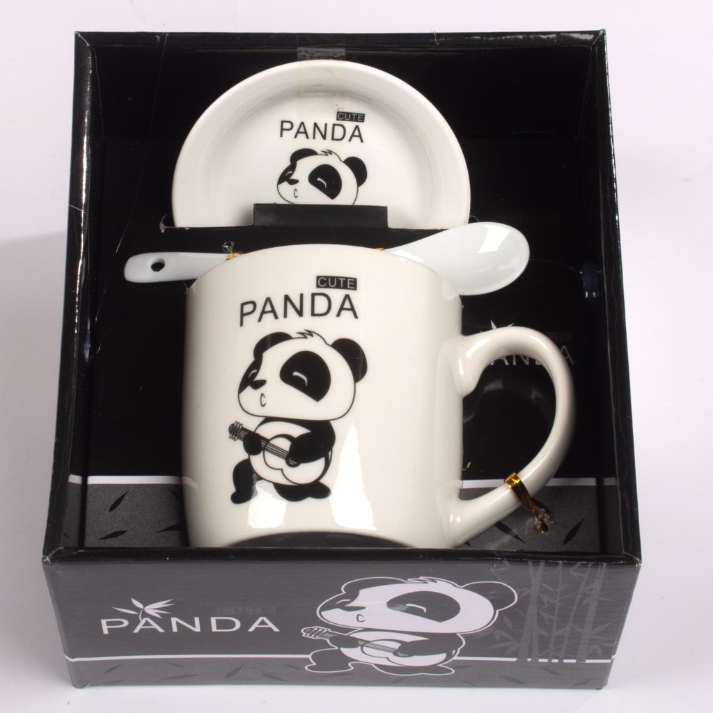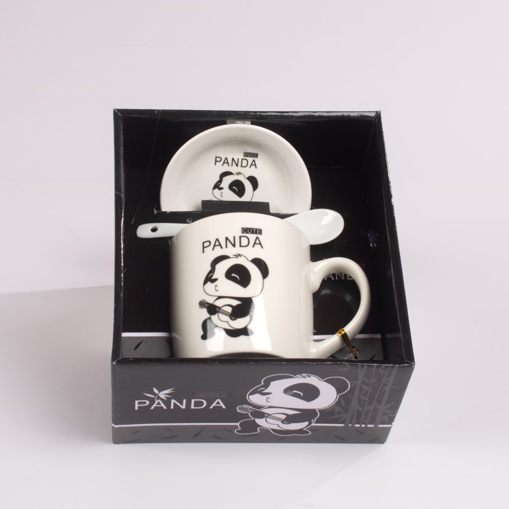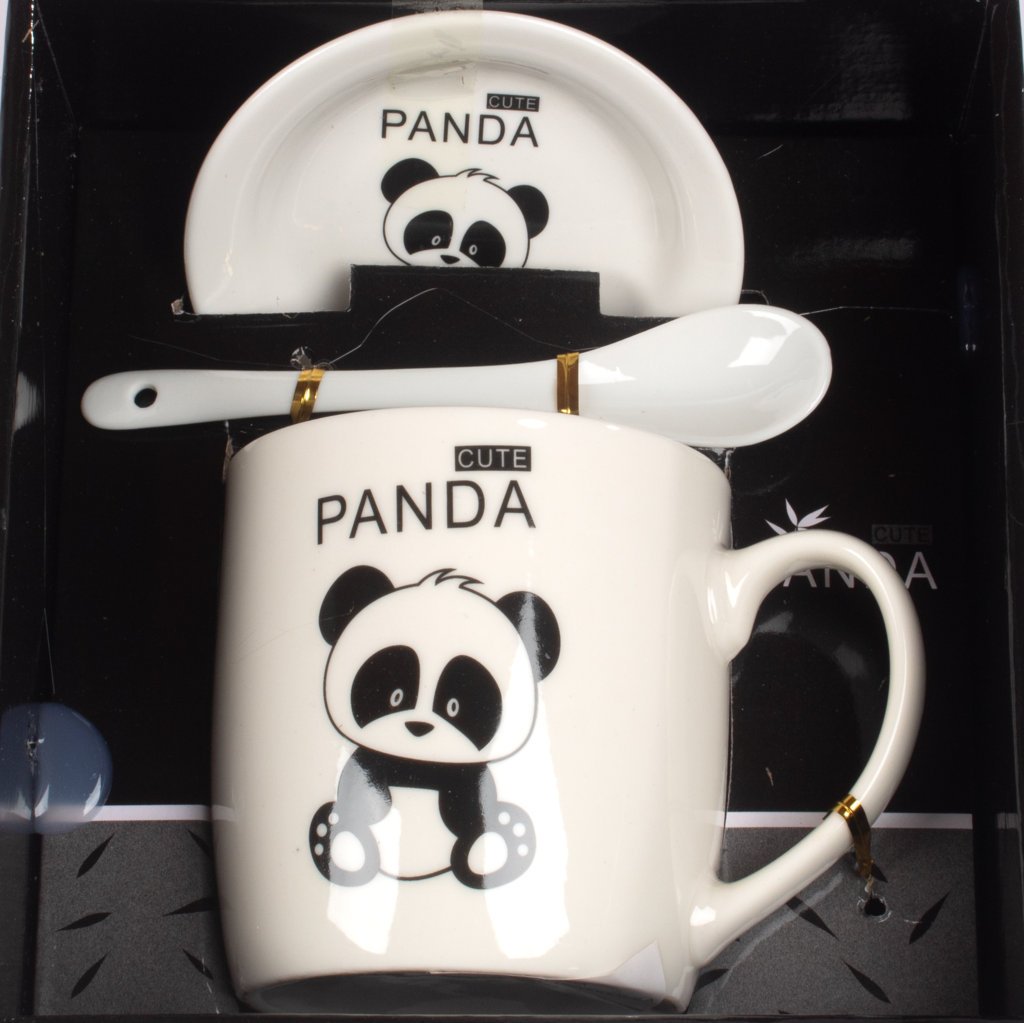 Mug Panda con Tapa y Cucharita 300 ml