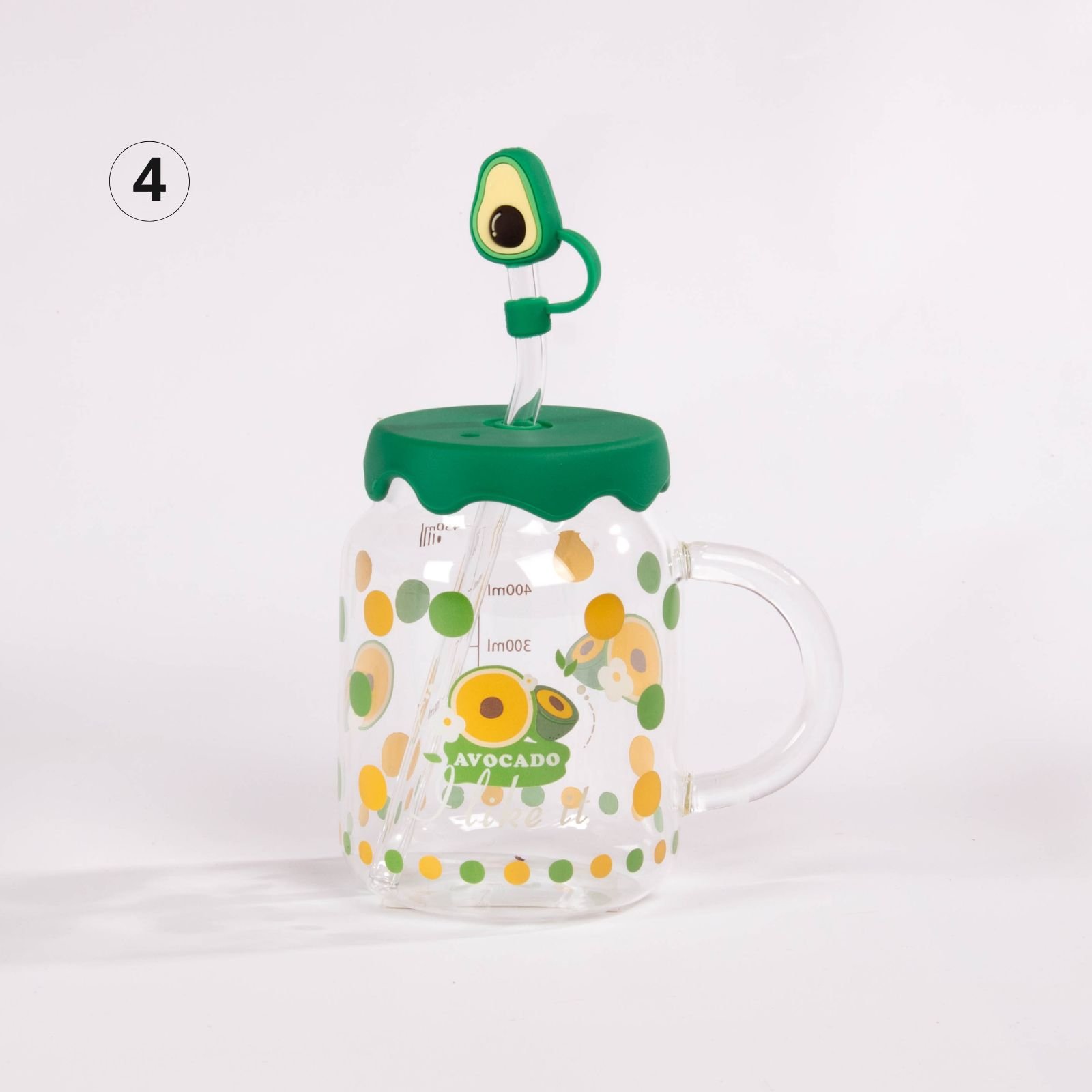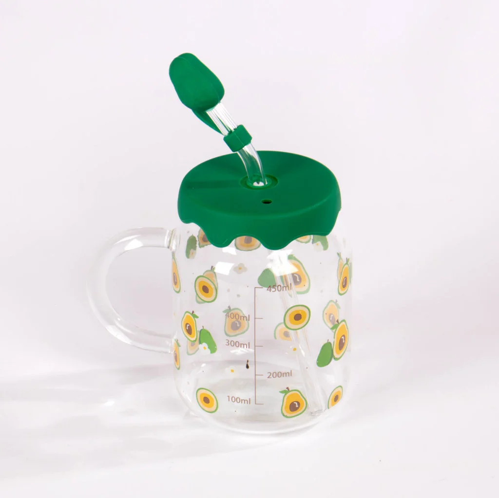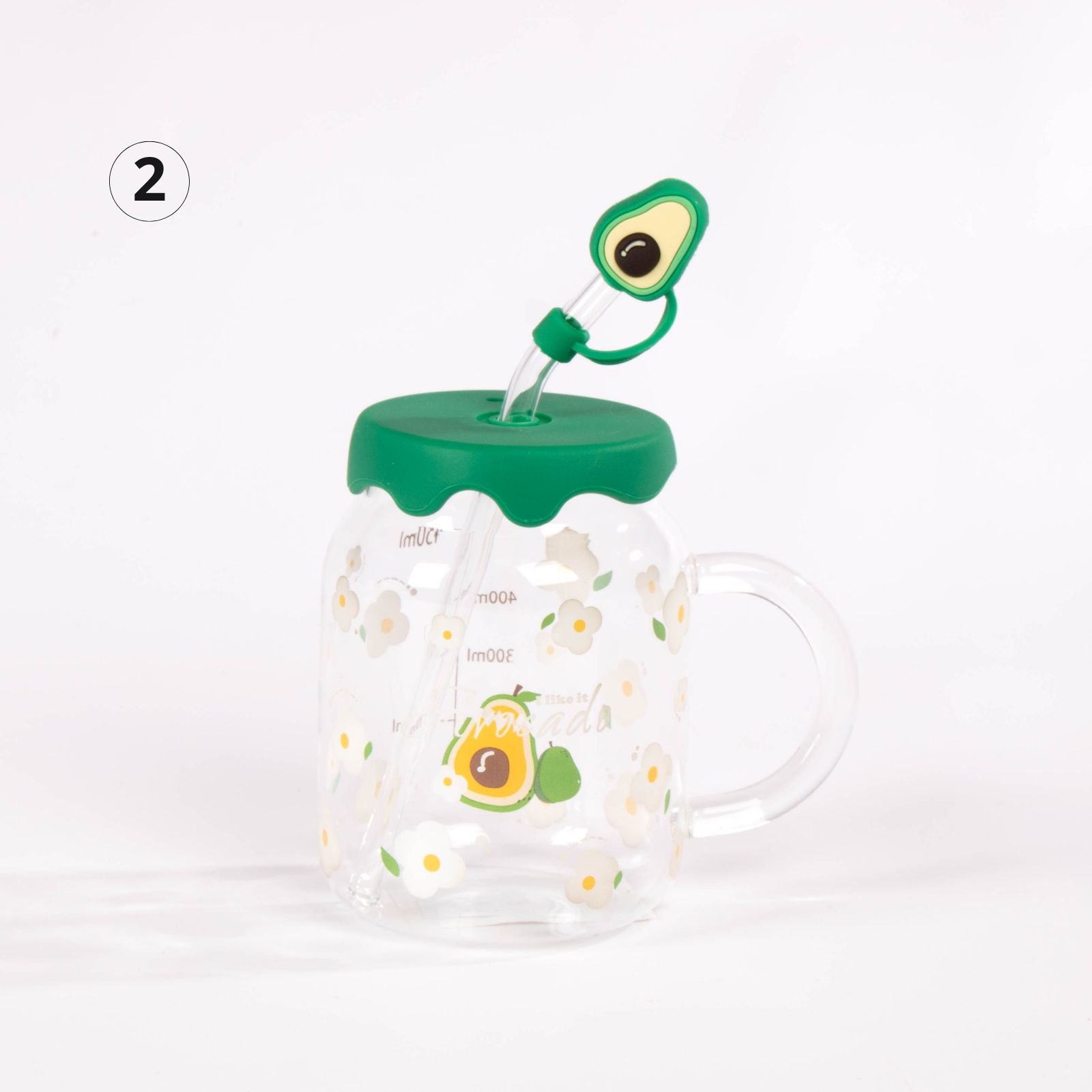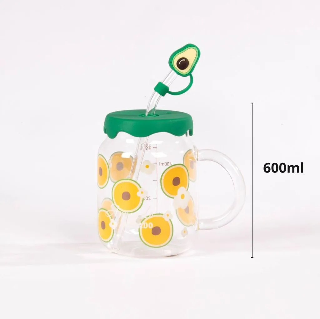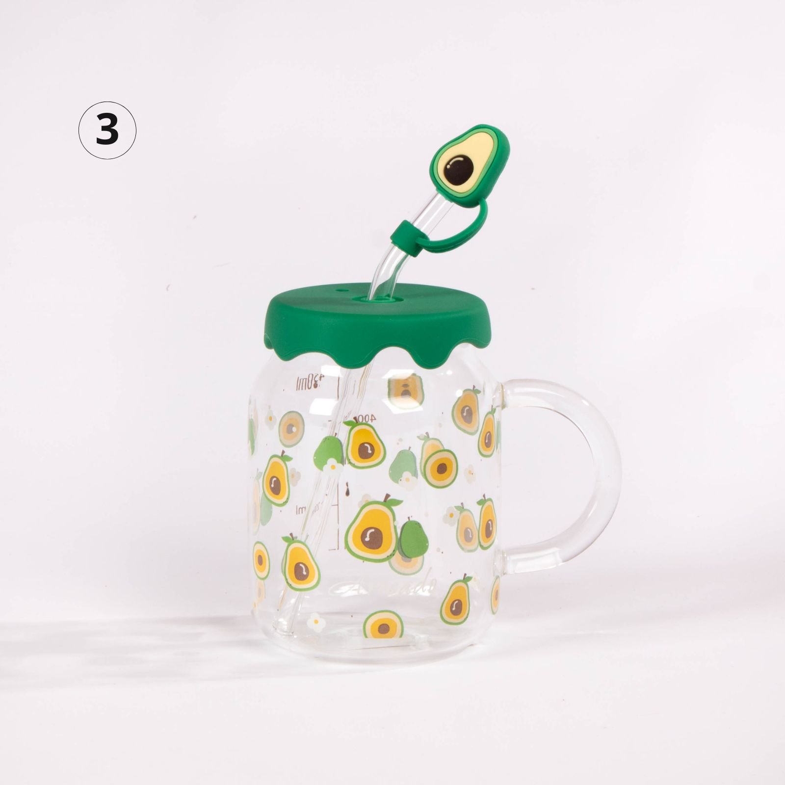 Moderno mug de vidrio con diseño de aguacate, perfecto para quienes disfrutan de un estilo fresco y actual. Disponible en colores suaves que complementan su apariencia delicada, este mug es ideal para bebidas frías o calientes gracias a su capacidad de 600 ml y sus accesorios reutilizables.