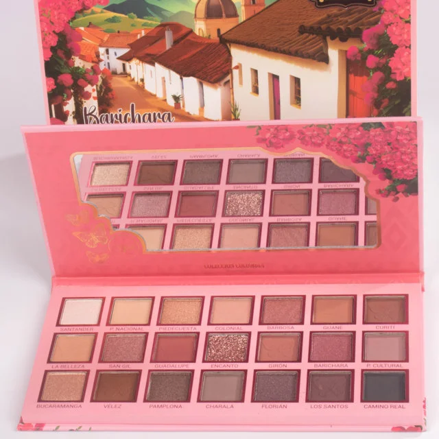 La paleta de sombras Barichara ofrece 21 tonos con diferentes texturas: mate, satinadas y brillantes. Su fórmula de alta pigmentación y fácil difuminado permite crear desde looks naturales hasta estilos sofisticados, inspirados en la calidez y colorido de este icónico pueblo colombiano. Ideal tanto para uso personal como profesional.