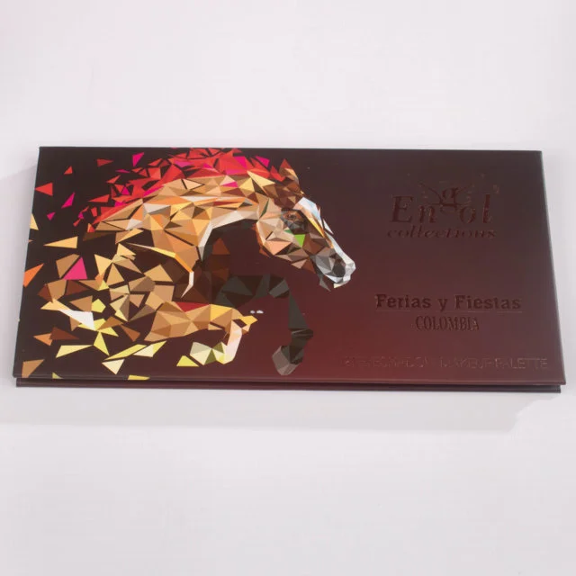 Paleta de maquillaje con una variedad de tonos cálidos y neutros, ideal para crear looks tanto naturales como intensos. Su empaque con diseño de caballo geométrico le da un toque elegante y moderno. Incluye espejo interno para facilitar la aplicación en cualquier lugar.