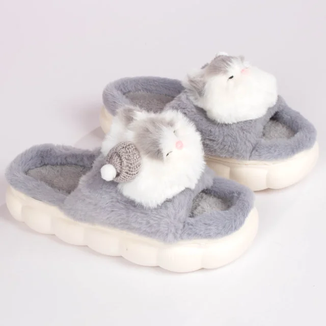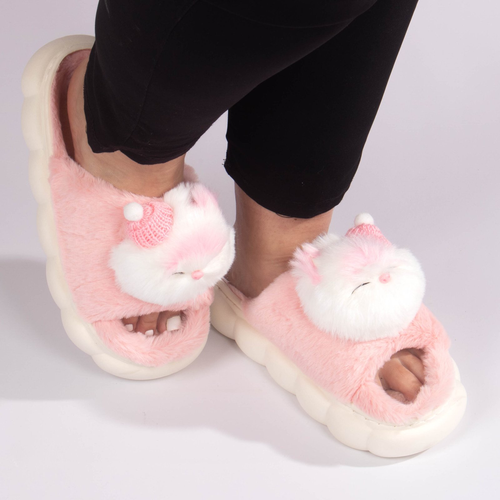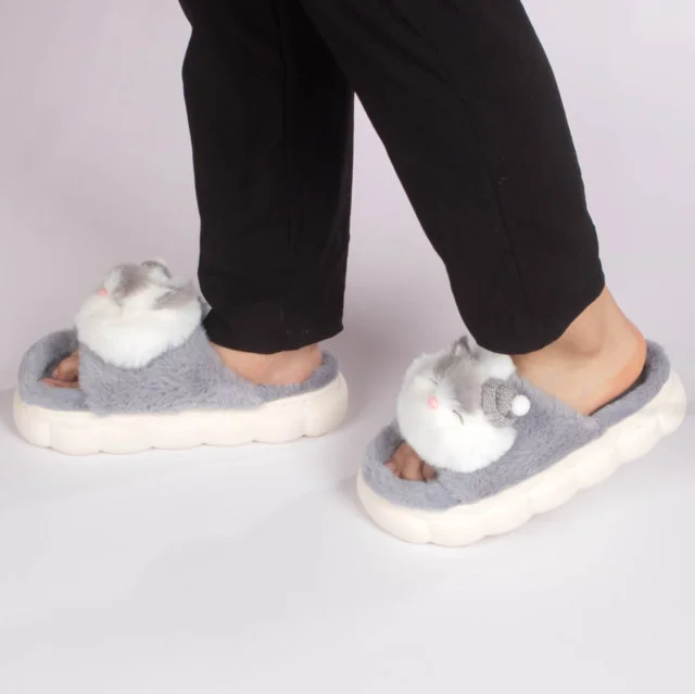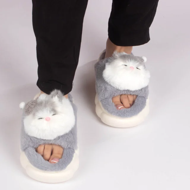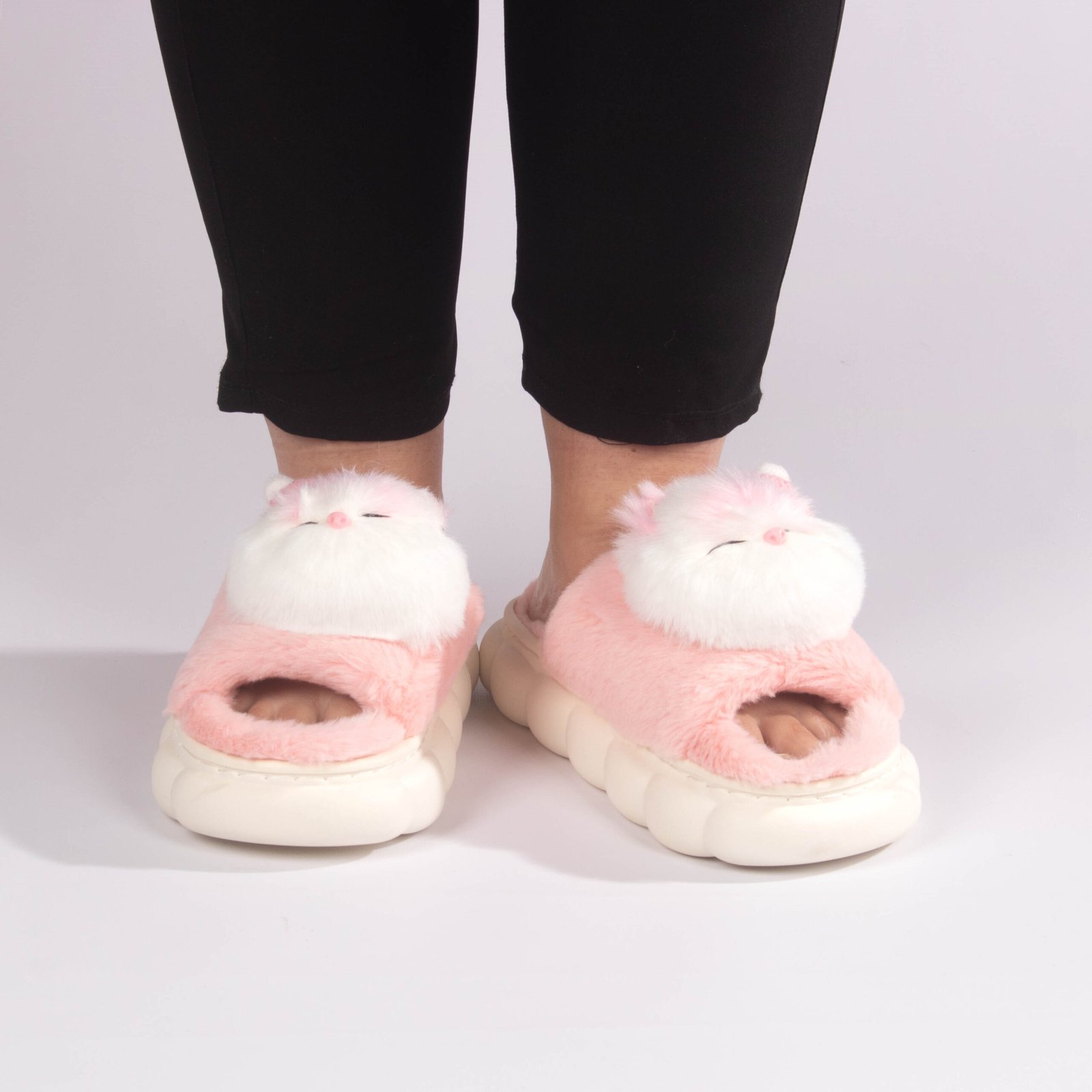 Pantuflas abiertas con un encantador diseño de gatito dormido en 3D, disponible en 3 colores: Gris, Rosado y Negro, recomendamos elegir tus pantuflas dos tallas por encima de tu talla habitual de calzado.