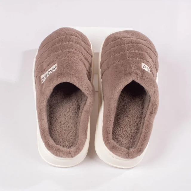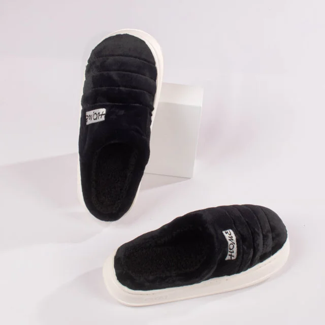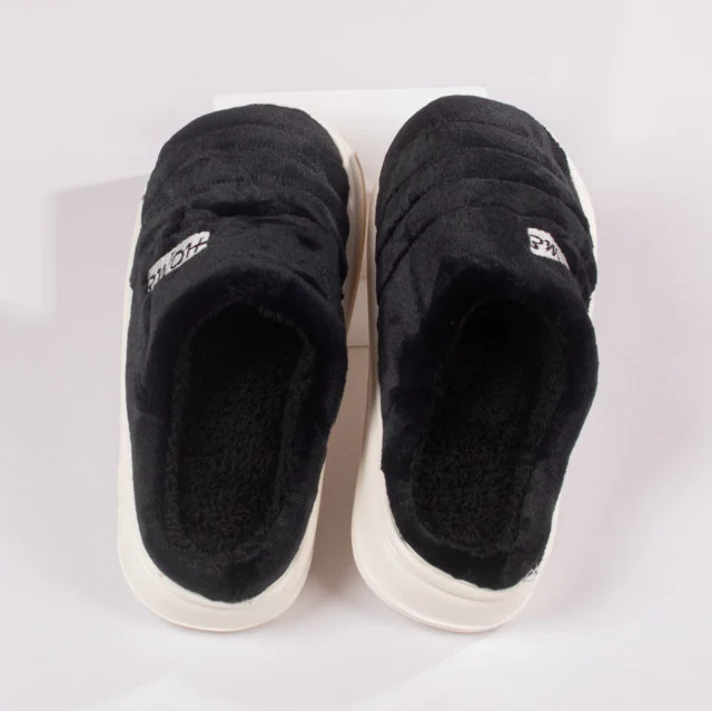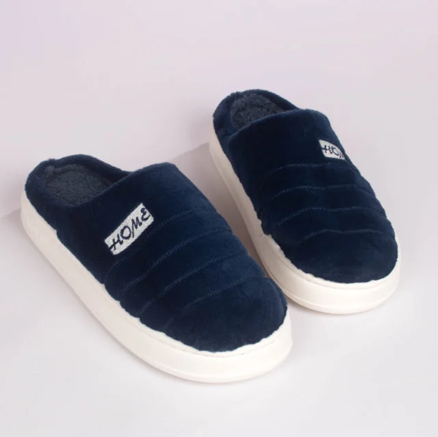 Pantuflas cómodas y elegantes disponibles en 3 colores: azul oscuro, negro y café claro, están elaboradas en un material suave tipo peluche con interior acolchado, cuentan con una suela blanca antideslizante que proporciona estabilidad y durabilidad, recomendamos elegir tus pantuflas dos tallas por encima de tu talla habitual de calzado.
