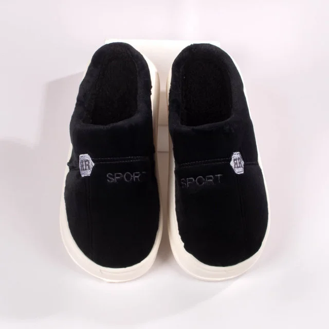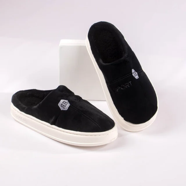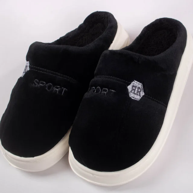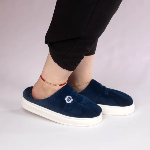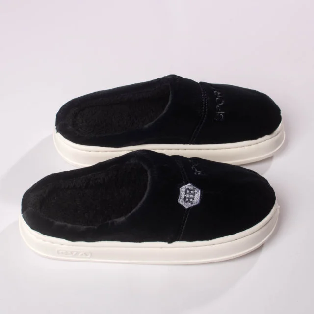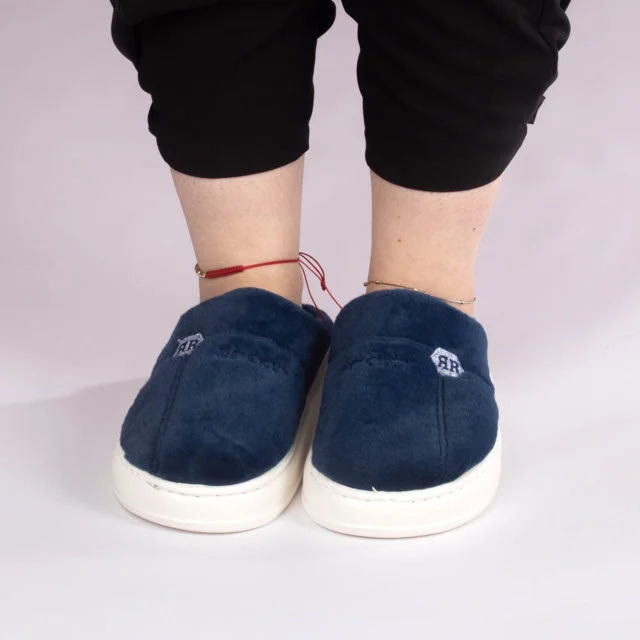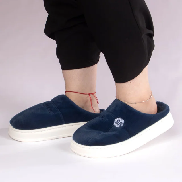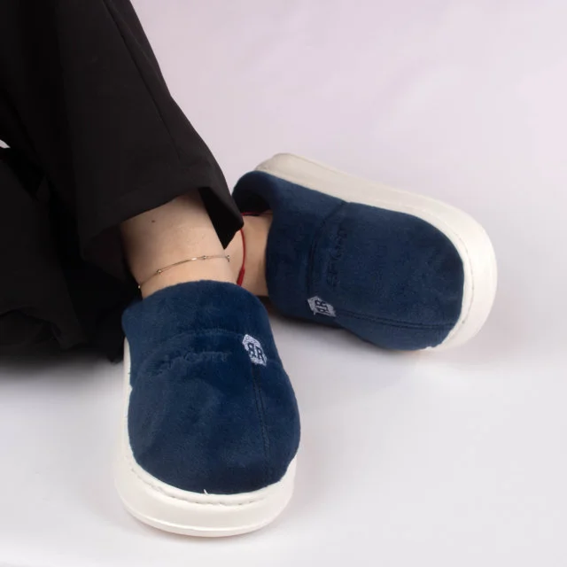 Pantuflas cómodas y elegantes disponibles en 2 colores: azul oscuro y negro, están elaboradas en un material suave tipo peluche con interior acolchado, cuentan con una suela blanca antideslizante que proporciona estabilidad y durabilidad, recomendamos elegir tus pantuflas dos tallas por encima de tu talla habitual de calzado.