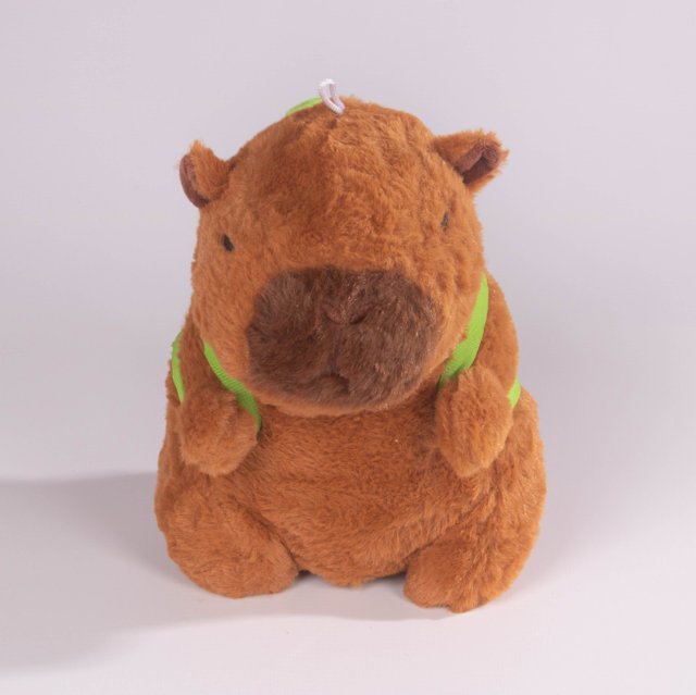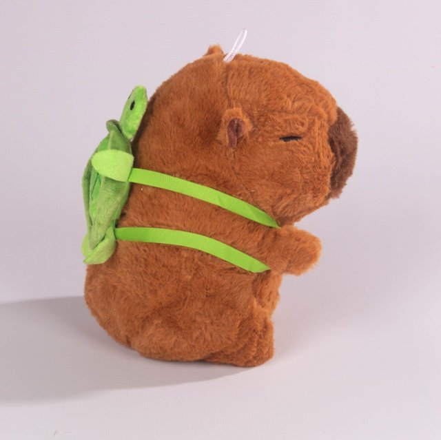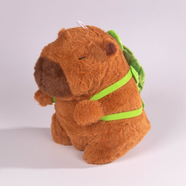 Peluche de capibara de 20 cm con diseño tierno y original. Está acompañado de un bolso en forma de tortuga que le da un detalle encantador y divertido. Disponible en color café, su textura suave y esponjosa lo convierte en un compañero perfecto para abrazar, regalar o coleccionar.