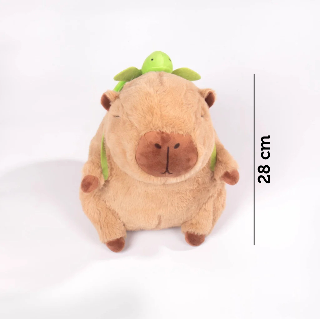 Adorable peluche de capibara en tamaño pequeño, ideal para acompañar momentos de ternura o decorar cualquier espacio. Su tamaño de 28 cm lo hace cómodo para llevar a todas partes, siendo una excelente opción para regalar a niños mayores de 3 años o adultos que aman lo tierno y original.