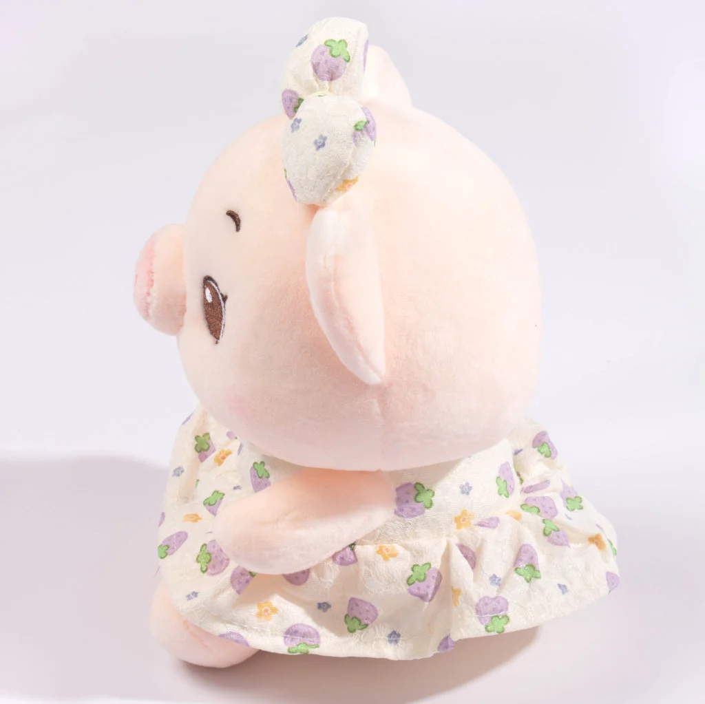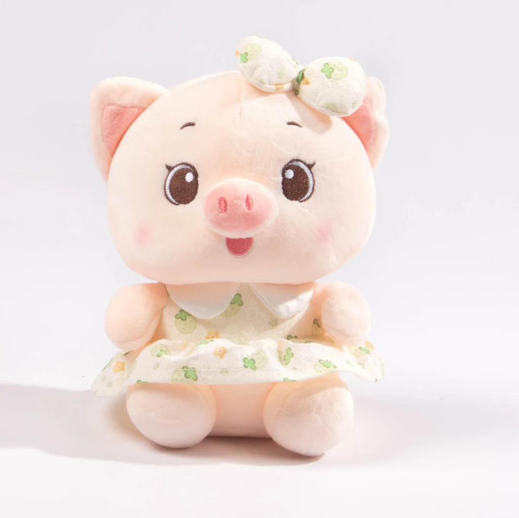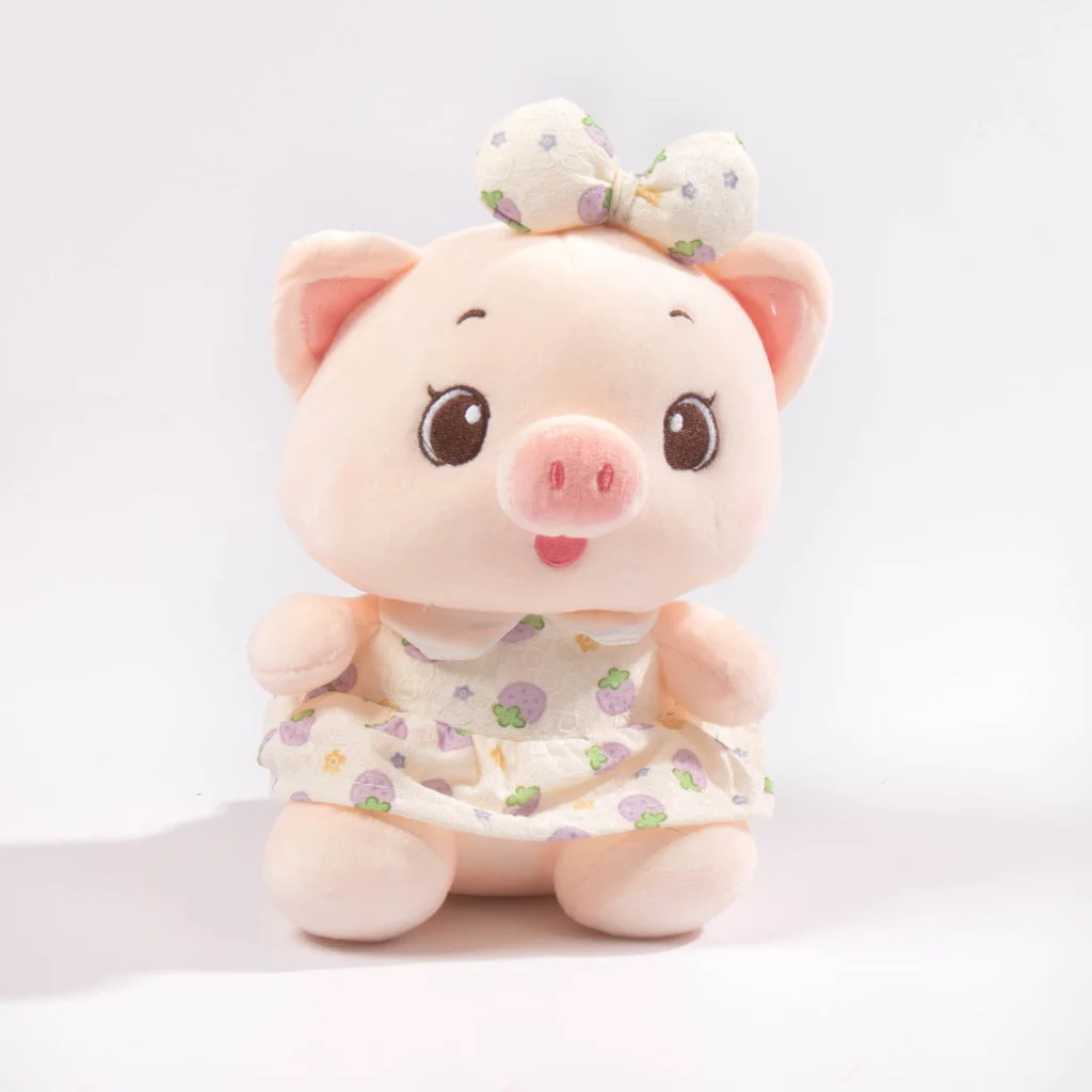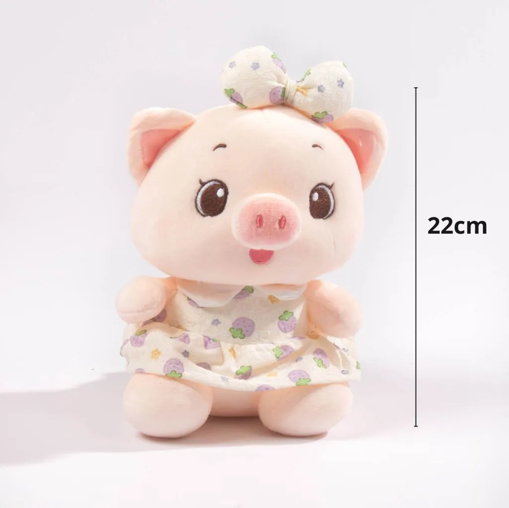 Tierno peluche de cerdito vestido con un conjunto estampado, diseñado para transmitir dulzura y encanto. Su textura suave y su expresión amigable lo convierten en un regalo ideal para niños y adultos. Perfecto para decorar habitaciones, complementar detalles especiales o añadir un toque adorable a cualquier espacio.