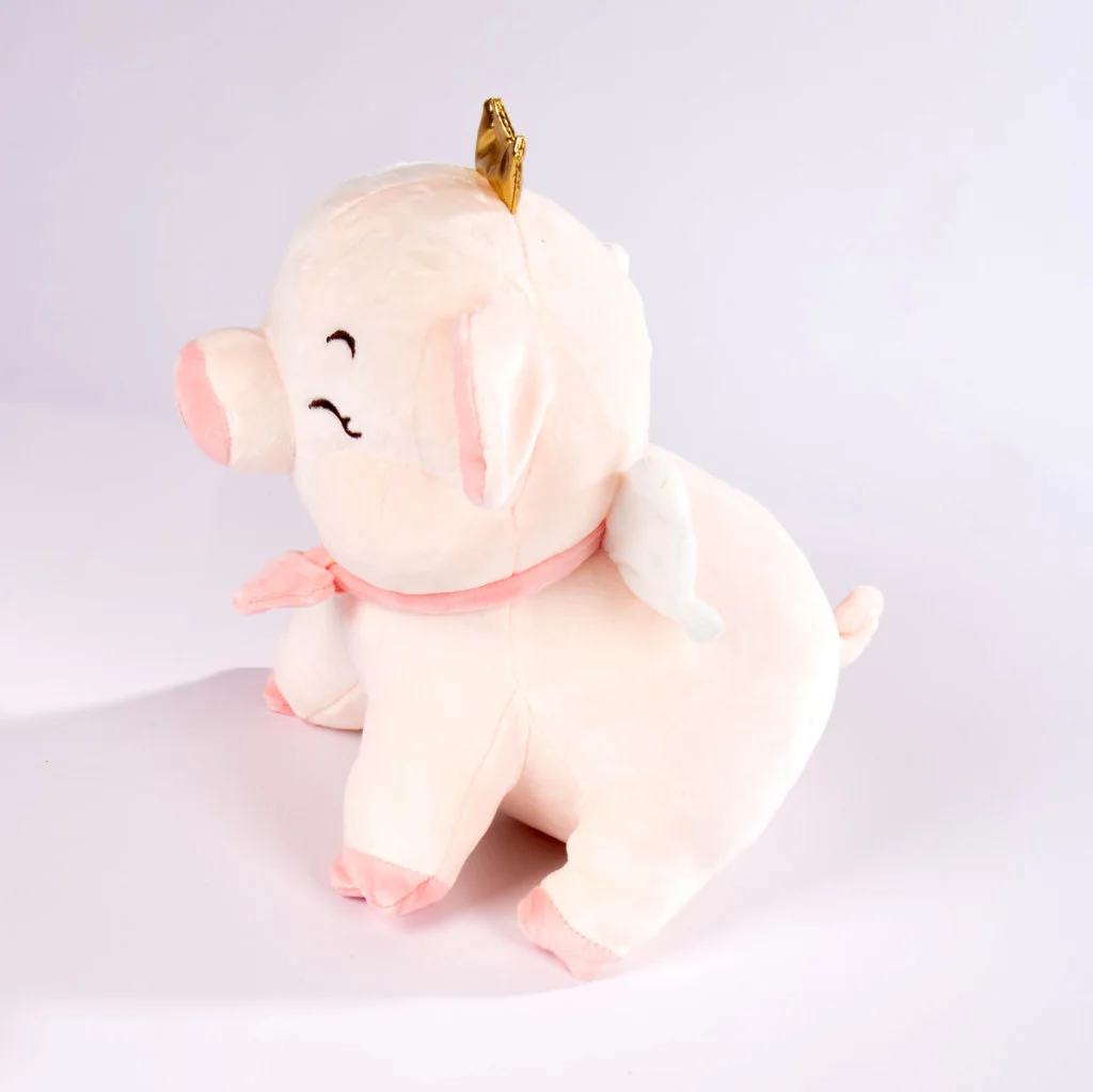 Este adorable peluche de cerdo con corona está listo para reinar en los corazones de todos. Su diseño tierno y elegante lo convierte en el regalo perfecto para cualquier ocasión especial. Con un tamaño de 30 cm, es ideal para abrazar, decorar y coleccionar.