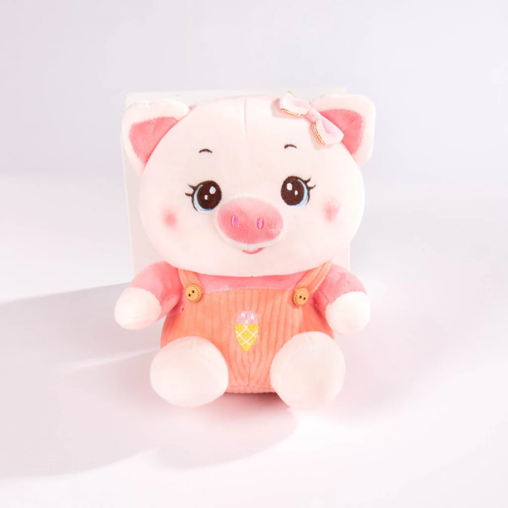 Dale un toque adorable a tu colección con este encantador peluche de cerdo con overol. Su diseño pequeño y tierno lo hace ideal para acompañar a niños y adultos por igual. Disponible en 2 colores, elige el que más combine con tu estilo.