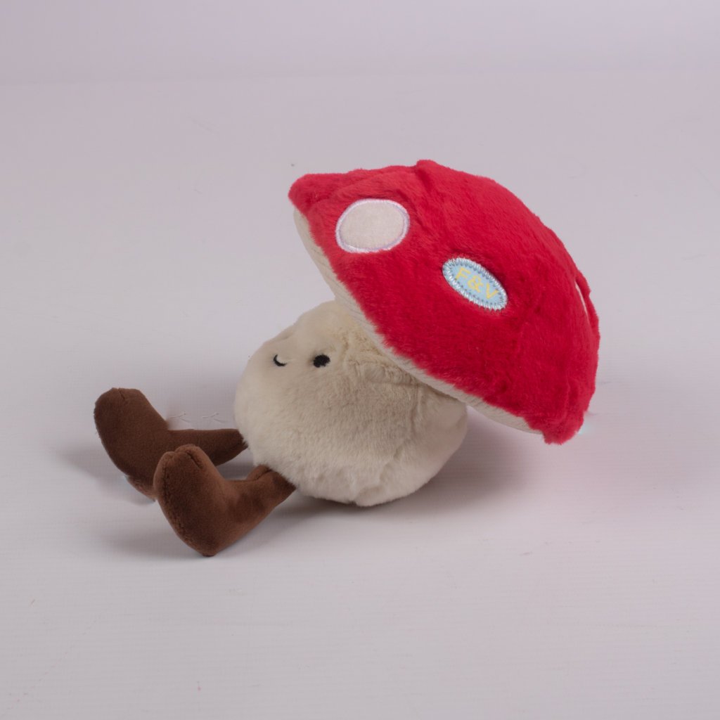 Peluche hongo de 20 cm con diseño tierno y divertido, ideal para decorar espacios infantiles o regalar. Su textura suave y su aspecto encantador lo convierten en un compañero perfecto para niños y amantes de los peluches. Posee un sombrero rojo con puntos blancos que realza su diseño llamativo.