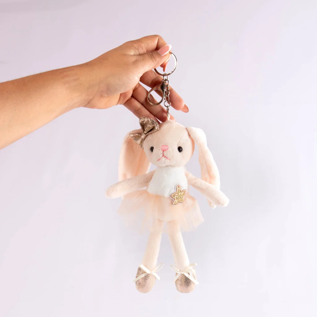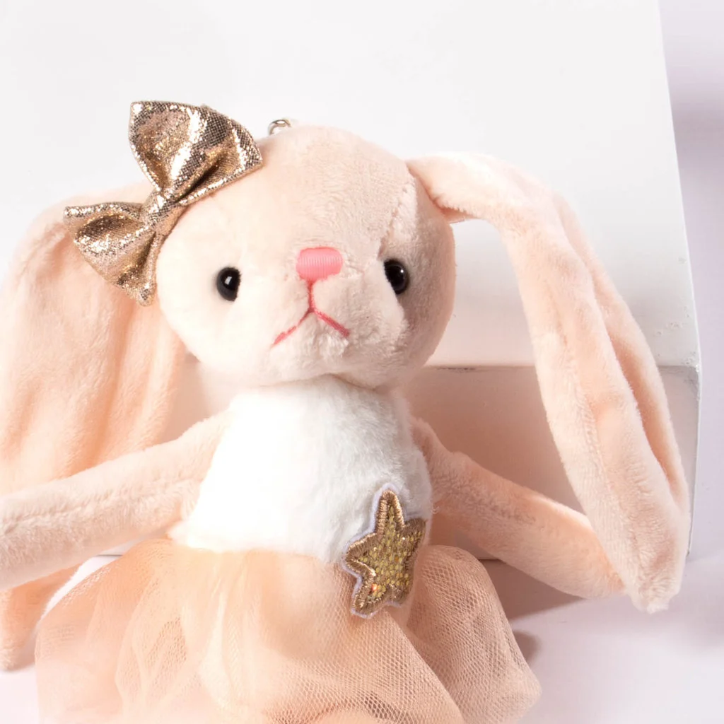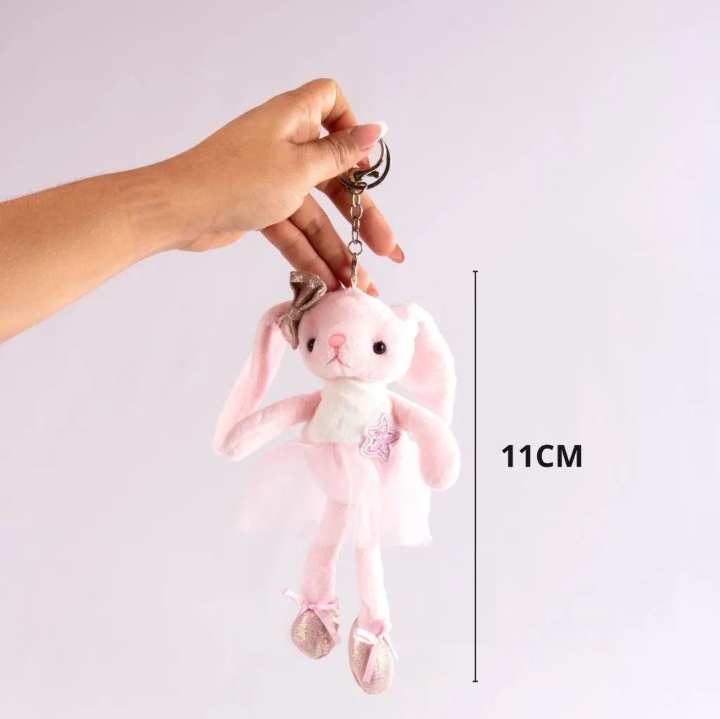 Este tierno llavero de conejo de 11 cm es el accesorio ideal para mochilas, bolsos o llaves. Su suave textura y adorable diseño lo convierten en un regalo perfecto para cualquier ocasión.