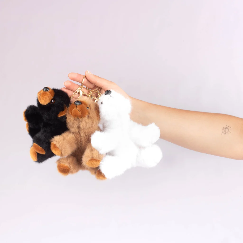 Este encantador peluche llavero con forma de oso es ideal para quienes buscan un detalle tierno y funcional. Su diseño suave y esponjoso incluye detalles en las patas y el hocico en tonos marrones que realzan su dulzura. Disponible en tres colores, es perfecto para coleccionar, regalar o llevar siempre contigo en tus llaves, bolso o mochila.
