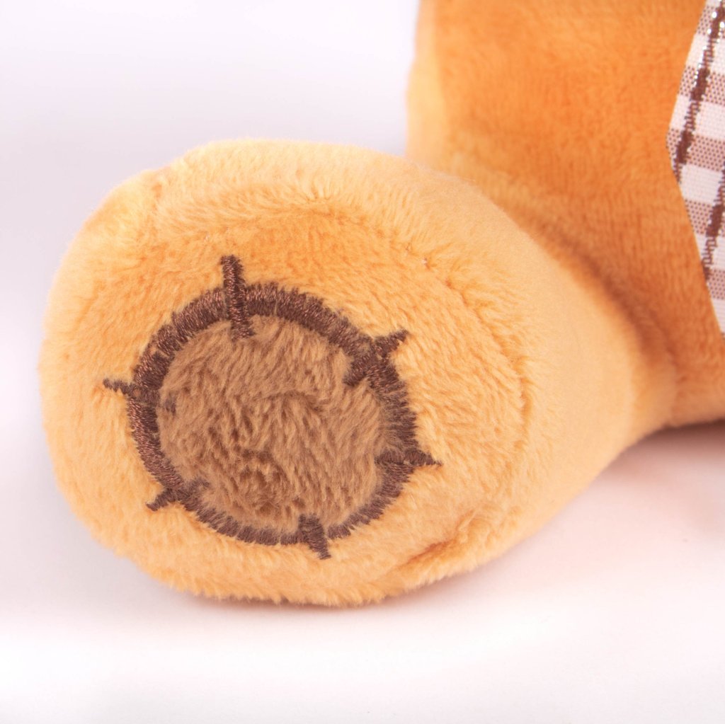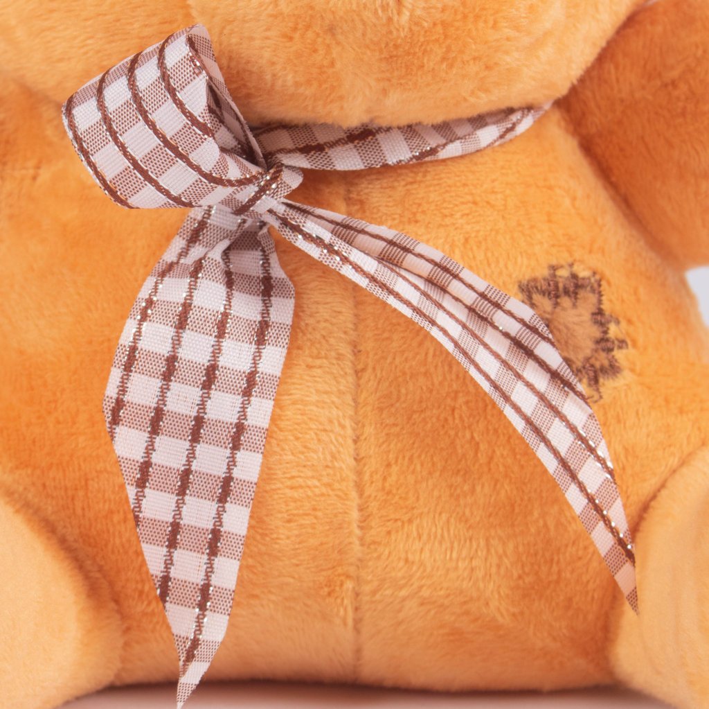 Peluche de osito de 17 cm con diseño tierno y detalles bordados que le dan un estilo encantador y acogedor. Su textura suave y su pañuelo estampado lo convierten en un detalle perfecto para regalos, decoración o colecciones. Ideal para quienes buscan un accesorio adorable y compacto.