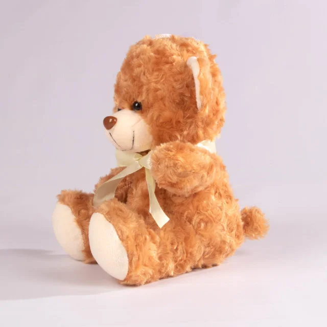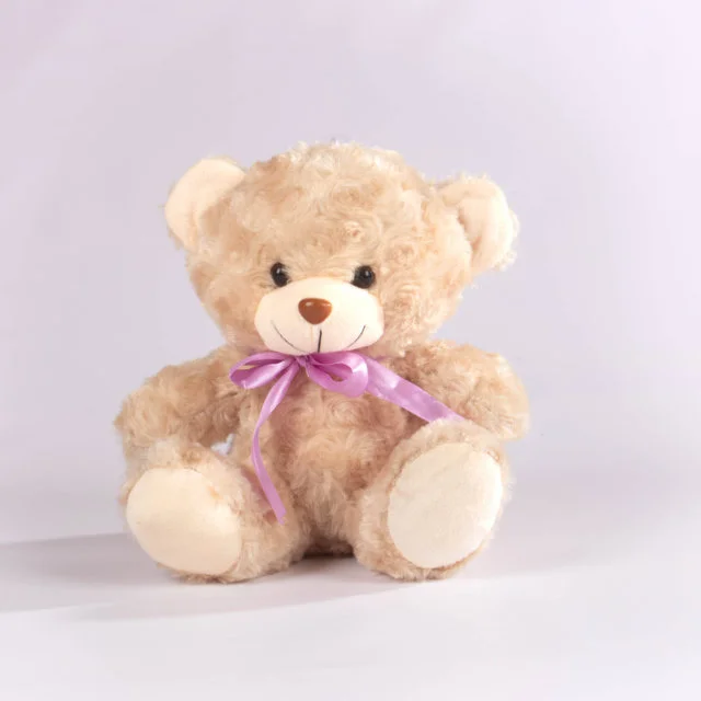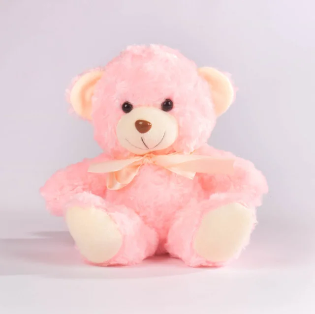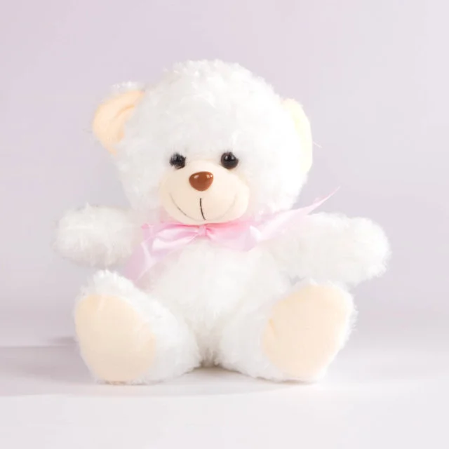 Encantador oso de peluche de 20 cm confeccionado en suave tela tipo peluche, adornado con un elegante corbatín. Disponible en 4 colores diferentes, ideal para regalar o decorar cualquier espacio con ternura y estilo.
