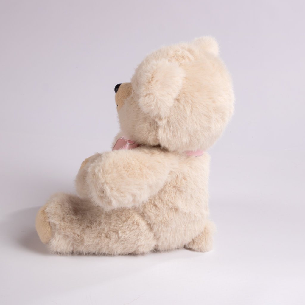 Hermoso peluche de oso de 35 cm, con un diseño clásico y elegante que incluye un moño decorativo en tonos suaves. Su textura esponjosa y su estilo encantador lo convierten en el detalle perfecto para regalar en ocasiones especiales o decorar espacios con un toque de ternura. Ideal para quienes buscan un peluche tradicional y delicado.