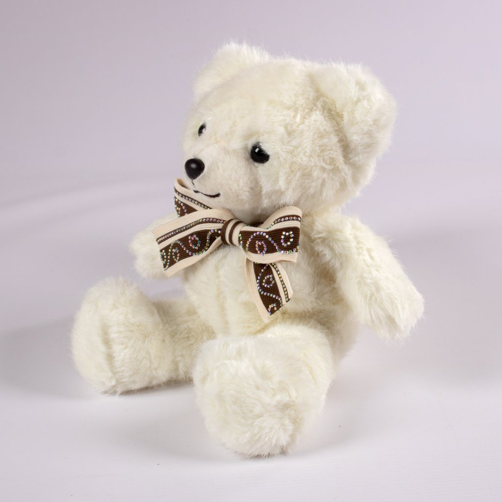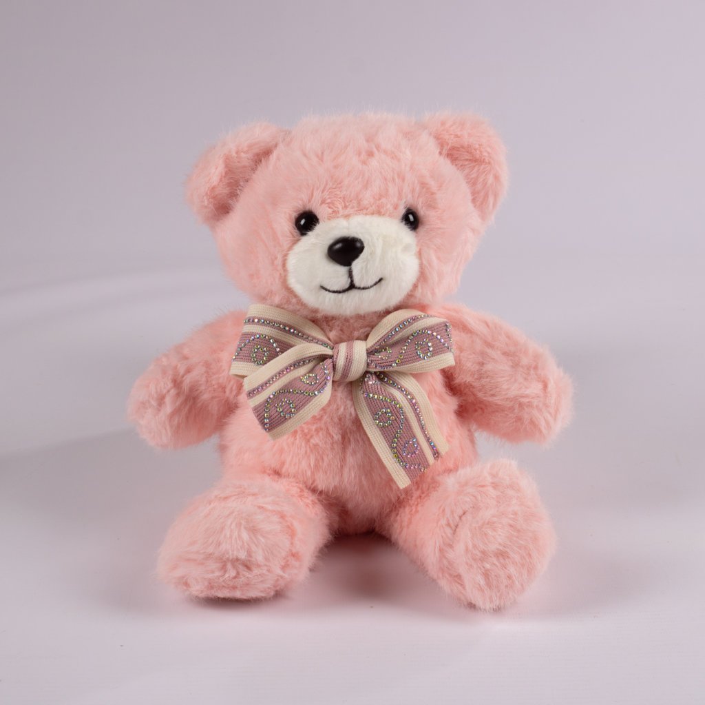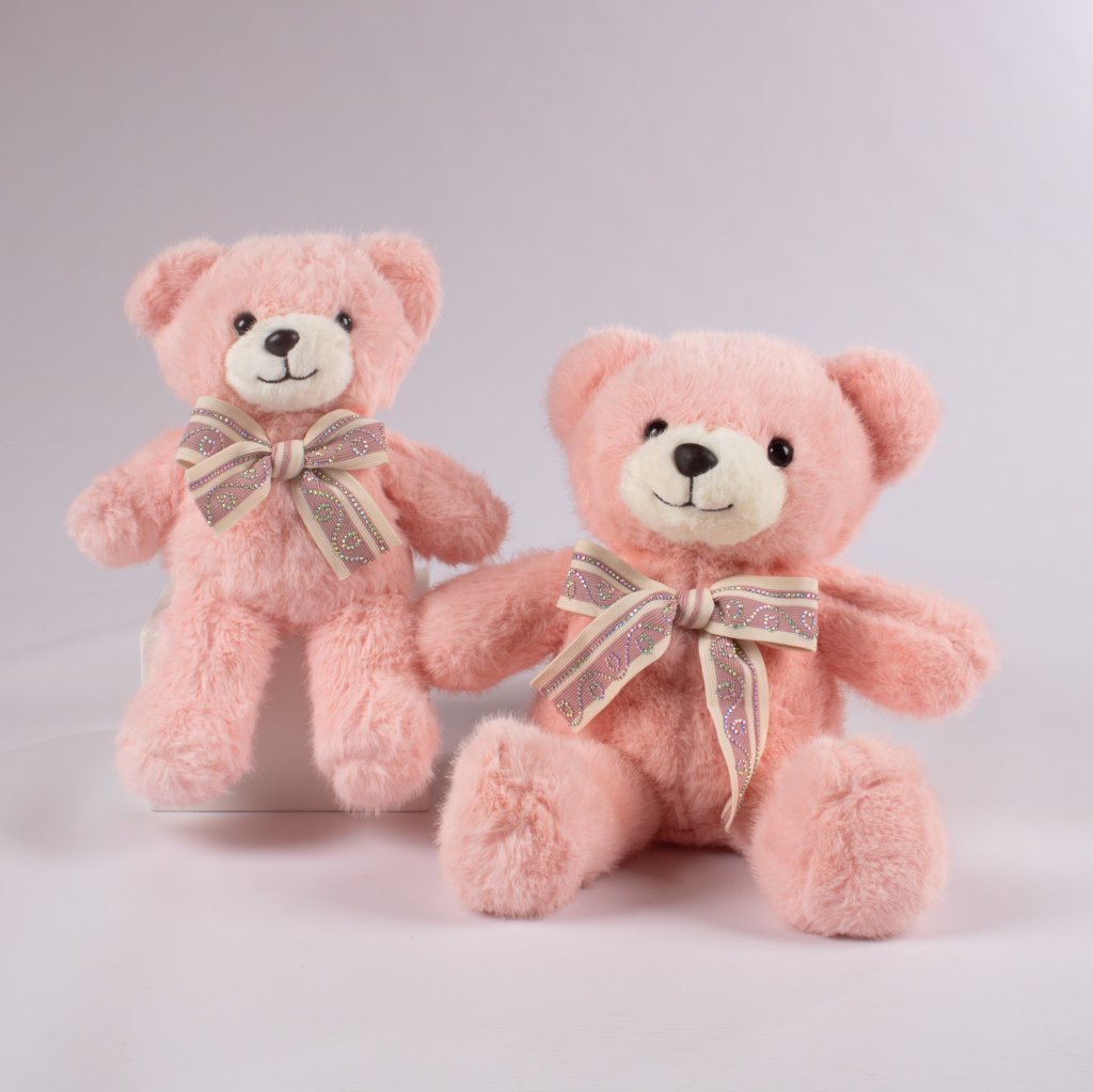 Hermoso peluche de oso de 30 cm, con un diseño tierno y elegante que incluye un moño decorativo de gran tamaño. Su textura suave y su estilo delicado lo convierten en el detalle perfecto para regalar, decorar o acompañar momentos especiales. Disponible en tonos encantadores que se adaptan a cualquier ocasión.