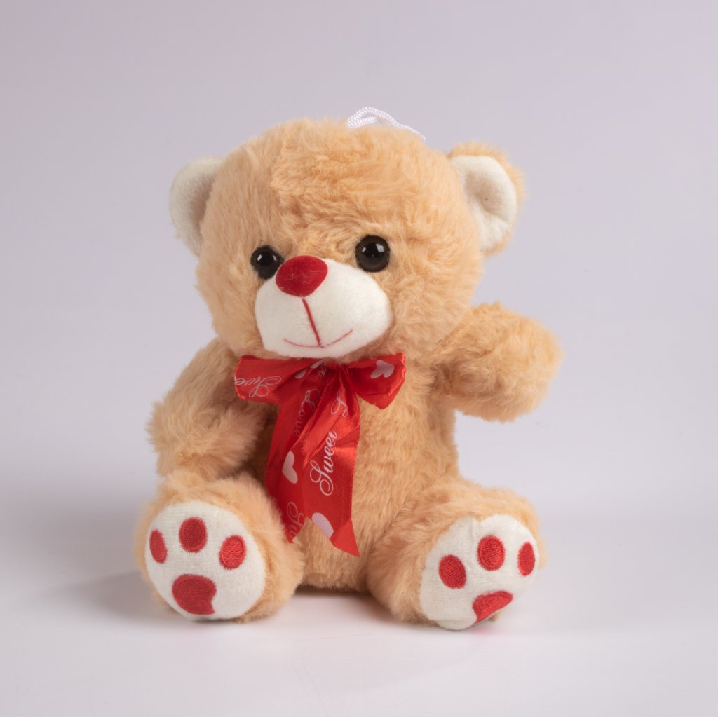 Adorable peluche de oso de 20 cm, con un diseño tierno que incluye un moño rojo decorativo que resalta su estilo clásico y romántico ❤️. Su tamaño compacto y su textura suave lo convierten en el detalle perfecto para regalar en cualquier ocasión especial. Ideal para sorprender con un gesto lleno de cariño.
